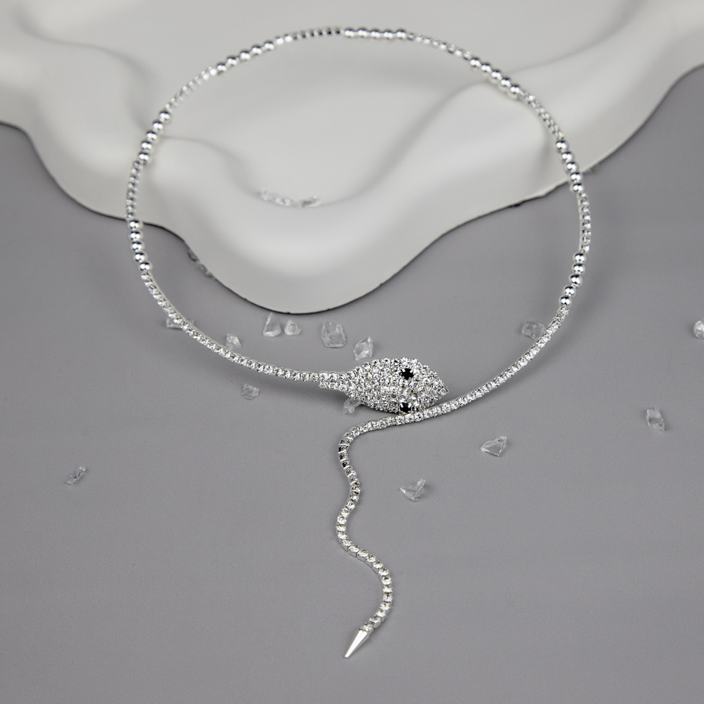Тип изделия: Колье; Проба: Биж.сплав гальван.покр.; Цвет металла: Белый; Коллекция: Sale, Змеи; Вставка: Кубический цирконий; Размер: безразмерное