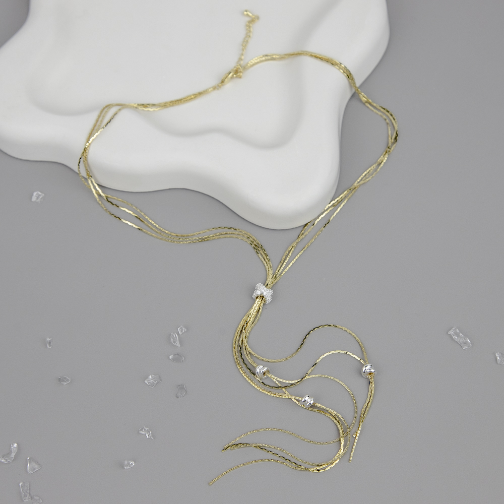 Тип изделия: Колье; Проба: Биж.сплав гальван.покр.; Цвет металла: Белый/Желтый; Коллекция: Вечерняя коллекция, Фианиты белые; Вставка: Кубический цирконий; Размер: 40,0-45,0