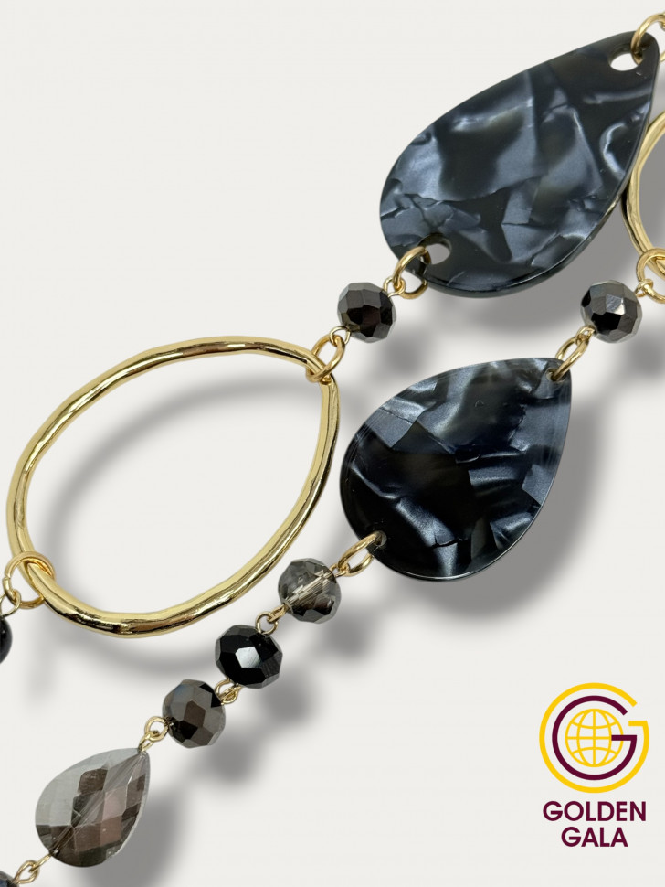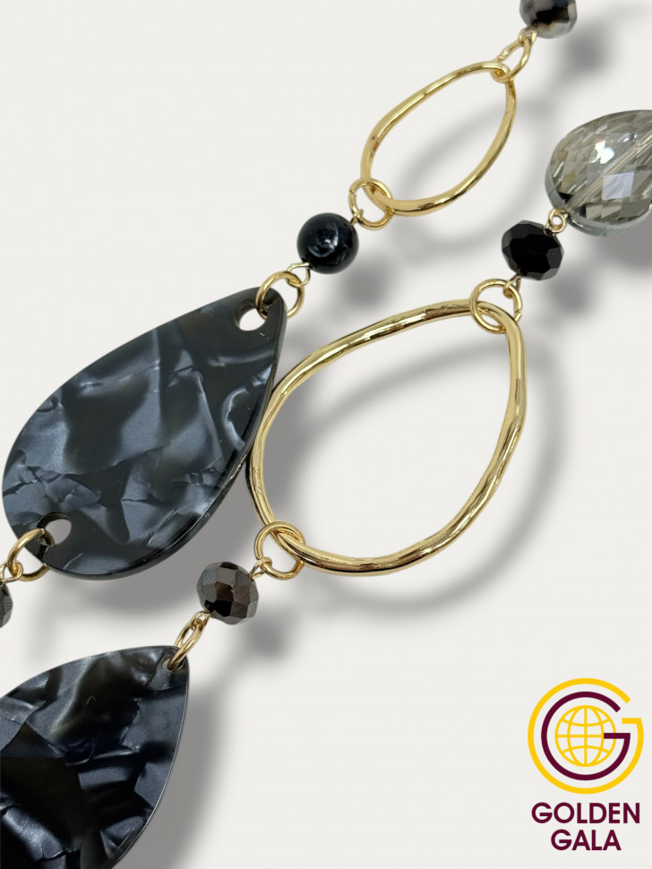 Акриловое стекло, хлопковый жемчуг, лунный пластик, натуральные и синтетические камни, кристаллы, хрустальное секло, натуральную кожу, имитации камня и дерева различных геометрических форм, люцит (акриловая смола), металлическая фурнитура и цепочки сделаны из ниобия с гальваническим покрытием. Это металл, который не меняет цвет при ношении и не вызывает аллергии.