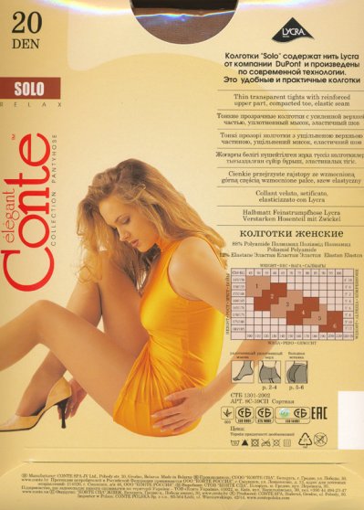 Производитель: Conte Оптовая продажа. Тонкие прозрачные колготки с уплотненными шортиками; уплотненный мысок, большие размеры с задней вставкой. Состав: Плотность: 20ден Полиамид: 88% Эластан: 12%