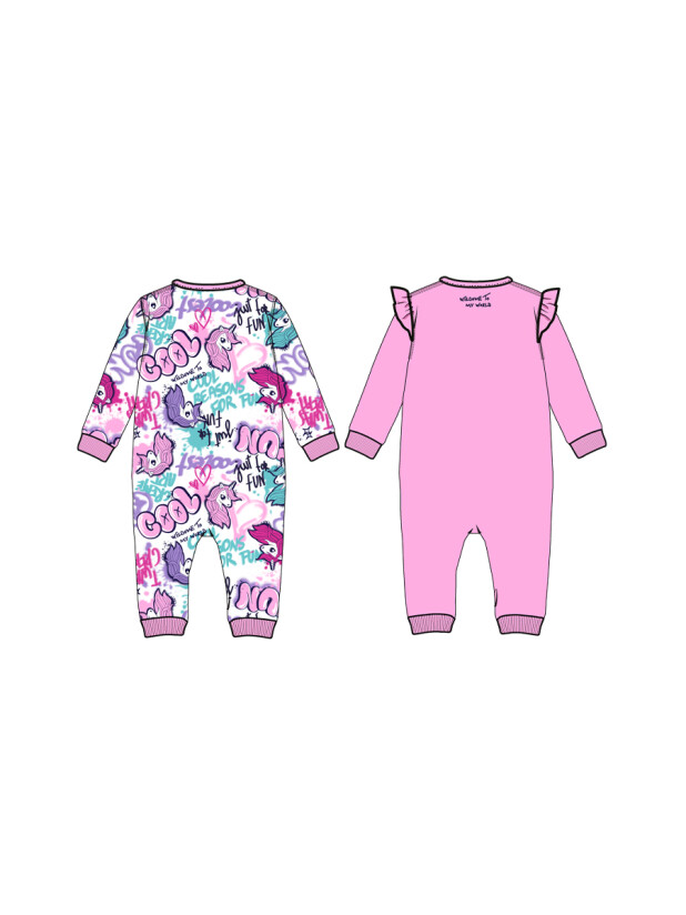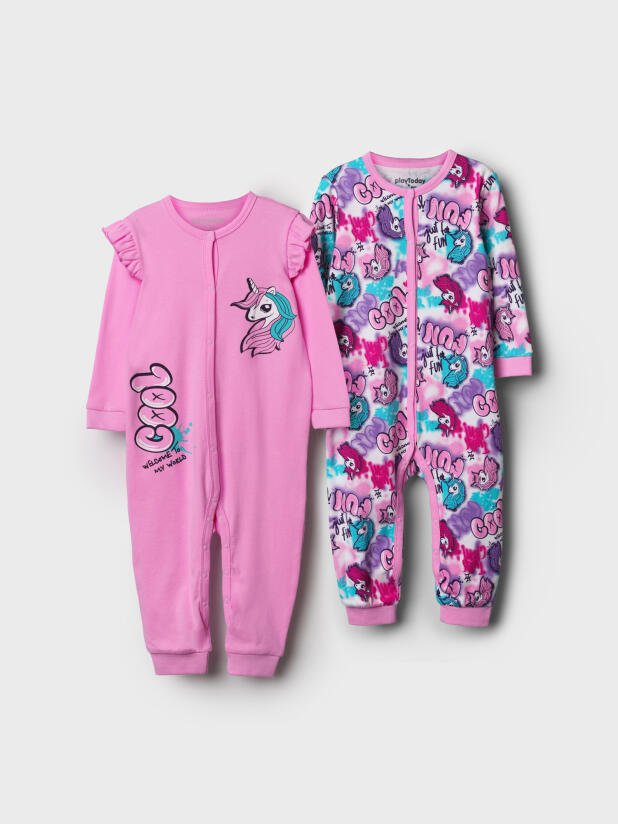 Комбинезон детский для девочки. Комбинезон с длинным рукавом из натурального хлопкового двойного трикотажа. 2 шт. в комплекте. 100% хлопок. Застежка на кнопки.
