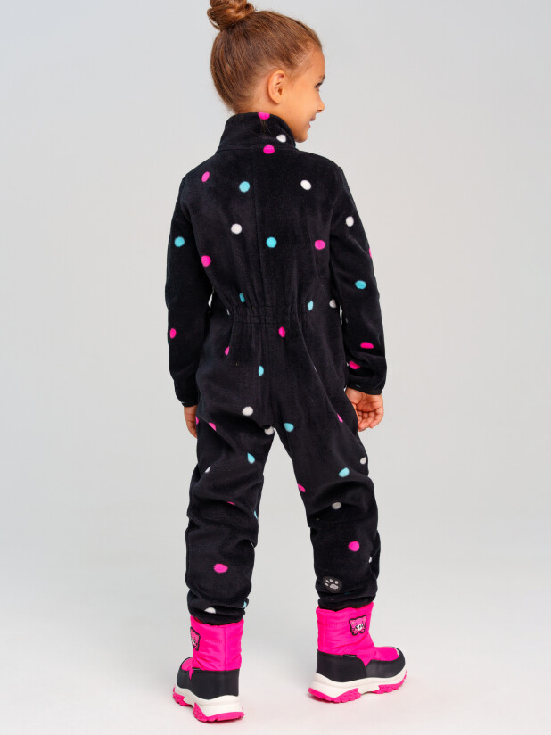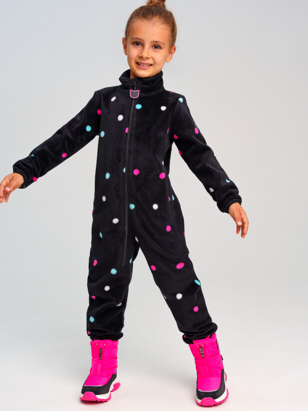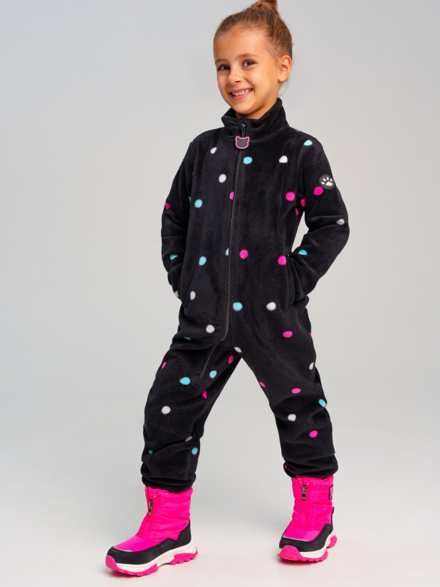 Комбинезон детский из флиса для девочки. Линия ARCTIC ( super warm) - идеальный вариант как для повседневной одежды второго слоя в холодное время года, так для использования в качестве верхней одежды на раннюю осень. Плотность флиса 290 г/м2. Воротник-стойка. Манжеты с эластичной окантовкой. Клапан для защиты подбородка при застегивании молнии. Комфорт посадки обеспечен за счет конструктивной резинки на поясе сзади. Флисовая поддева идеально подходит под зимний мембранный костюм или комбинезон, в качестве второго слоя в трехслойной концепции одежды для зимы. Основная функция поддевы из флиса – удерживать тепло и передавать пар от первого слоя – термобелья, оставаясь сухим.