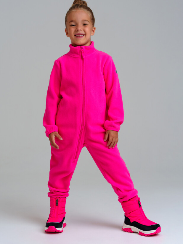 Комбинезон детский из флиса для девочки. Линия NORD ( warm) – для повседневной одежды второго слоя в холодное время года. Плотность флиса 260 г/м2. Воротник-стойка. Манжеты с эластичной окантовкой. Клапан для защиты подбородка при застегивании молнии. Комфорт посадки обеспечен за счет конструктивной резинки на поясе сзади. Флисовая поддева идеально подходит под зимний мембранный костюм или комбинезон, в качестве второго слоя в трехслойной концепции одежды для зимы. Основная функция поддевы из флиса – удерживать тепло и передавать пар от первого слоя – термобелья, оставаясь сухим.