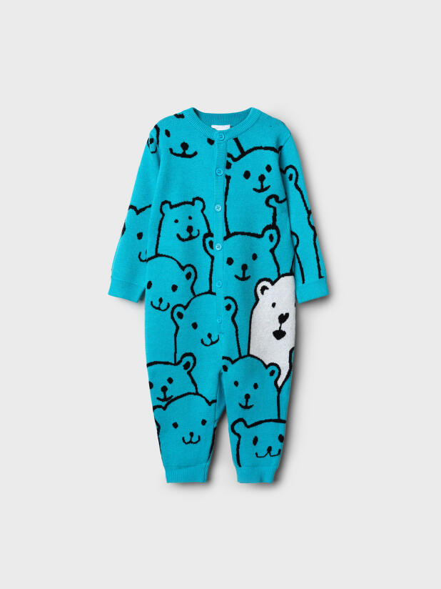 Детский трикотажный вязаный комбинезон с принтом для мальчика от PlayToday — уютный и яркий вариант для самых маленьких. Мягкий трикотаж и удобный крой обеспечат комфорт в течение всего дня, а весёлый медвежий принт подарит хорошее настроение ребёнку и родителям.