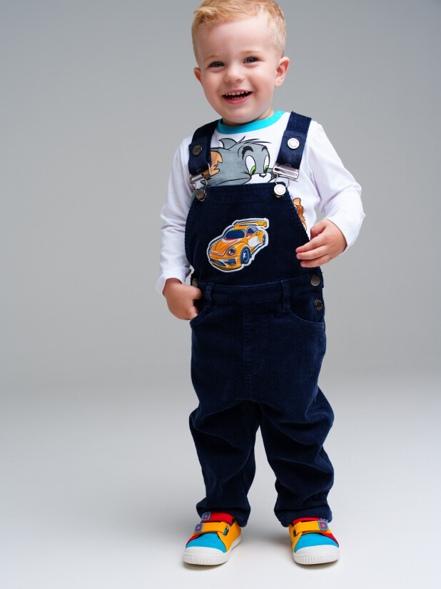 Комбинезон из вельвета, утепленный флисом. Высокое содержание хлопка 80%. Посадка regular fit – классический крой со слегка зауженным силуэтом от колена. Регулируемые по длине лямки.