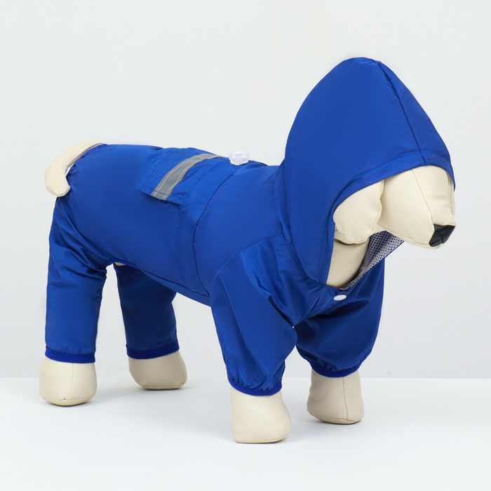 Комбинезон застегивается на кнопки, что позволяет быстро и легко одевать и снимать комбинезон, также есть светоотражающие полосы на спинке - это дополнительный элемент безопасности, который позволяет увидеть собаку в темное время суток, когда она находится на улице. Это особенно важно, если вы гуляете со своей собакой вблизи дороги или в непосредственной близости от автомобилей.