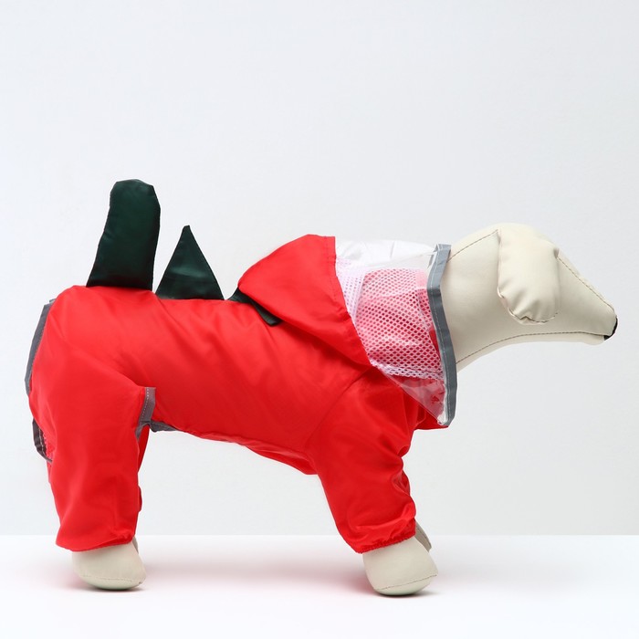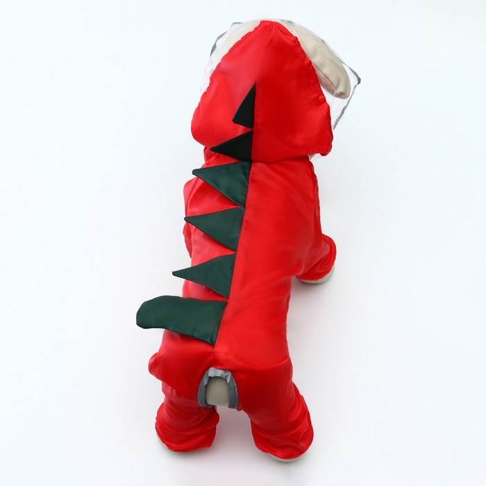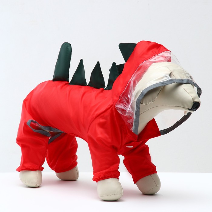 Комбинезон для животных демисезонный с капюшоном "Дракоша" - стильный и удобный аксессуар для вашего домашнего любимца. Комбинезон для собак изготовлен из полиэстера, водоотталкивающего непромокаемого материала, что позволяет шерсти животного оставаться сухой после прогулок. Комбинезон с капюшоном застегивается на кнопки. На лапах есть утягивающие резиночки, а на капюшоне есть прозрачный козырек, который защитит вашего питомца от ветра, пыли и дождя. Также по краю комбинезона имеются светоотражающие полосы, а также в районе холки есть петля для крепления поводка. Стильный комбинезон имеет необычный дизайн в форме дракоши и облегчит хозяину уход за собакой после прогулок. Комбинезон - дождевик подойдет для мелких и средних пород собак, таких как ши тцу, бишон, мопс, пудель, китайская хохлатая и другие. Отличный вариант для прогулок в сухую погоду. Стильный и оригинальный комбинезон легко одевается и снимается.