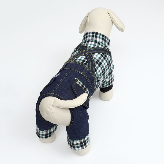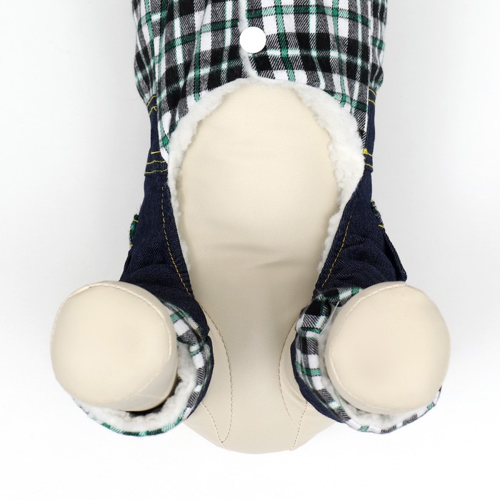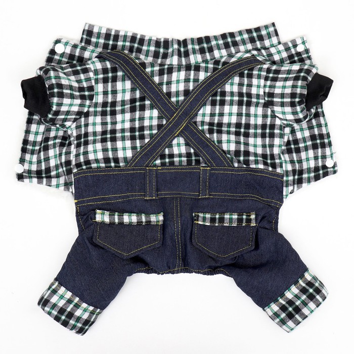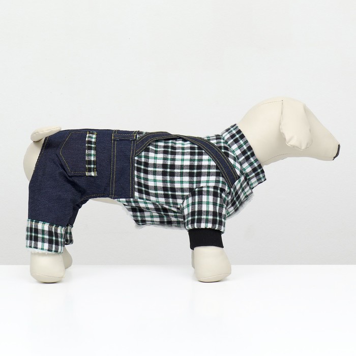 Габариты: 26 x 20 x 3; В боксе: 100 шт; Сезон: Зима; Длина спинки, см: 20; Обхват шеи, см: 20; Обхват груди, см: 30; Пол: Самка, Самец; Страна: Китай; Состав: Текстиль; Материалы: текстиль; Фасовка: по 1 шт; Индивидуальная упаковка: Пакет; Сертификат: Не подлежит сертификации; Цвет: Синий; Вид застёжки: Кнопка; С подкладкой: Да Комбинезон "Men" для собак - это практичный и модный комбинезон, который идеально подходит для прогулок в холодное время года. Он сделан из износостойкого материала, который оберегает питомца от холодного воздуха, дождя, снега и ветра.Комбинезон оснащен меховым подкладом, который обеспечивает дополнительный комфорт для животного, сохраняя ему тепло во время прогулки на свежем воздухе. Комбинезон легко одевается на собаку, благодаря прочным кнопкам.Элегантный дизайн комбинезона выполнен в виде джинсов и рубашки в клетку, который придает вашему питомцу оригинальный вид на прогулке.Этот комбинезон "Men" для собак не только сочетает в себе функциональность и комфорт, но и делает вашего питомца неотразимым на улицах.