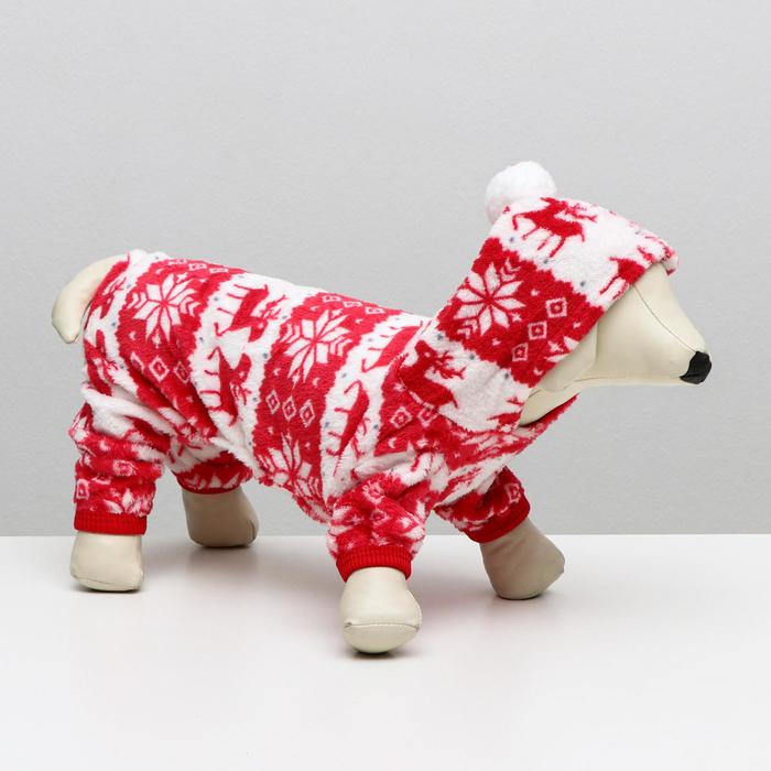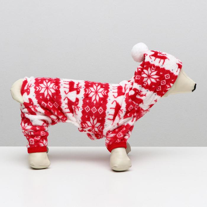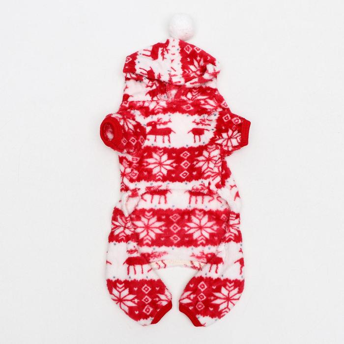 Уже много лет модный скандинавский орнамент не сдает своих позиций и остается непременной деталью зимнего гардероба модников и модниц. Плюшевый мягкий комбинезон с капюшоном для мелких и средних пород собак и кошек, идеально подходит в качестве подарка как для ваших любимцев, так и для владельцев питомцев. Отличный вариант для дома, а также для прогулок в сухую погоду. Костюм отлично тянется и садится на животных. Открытый живот, универсален для мальчиков и девочек. Сезон весна - осень - зима.