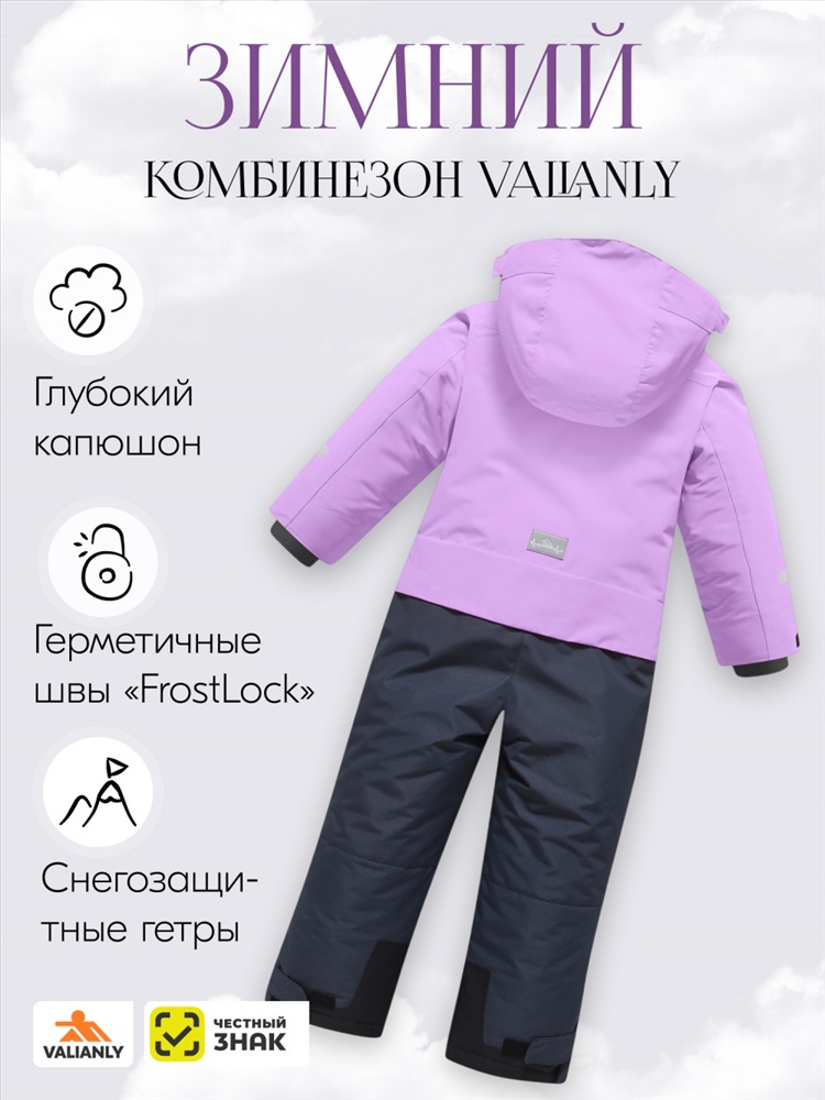 Производитель: VALIANLY; Артикул: 9410F; Бренд: VALIANLY; Пол: Девочка; Сезон: Зима; Страна производителя: Китай; Тип: Комбинезон; Цвет: Фиолетовый; Рост: от 128 до 158; Диапазон температур: °С от + 5° до -25°; Водонепроницаемость: 10 000 мм; Комплектация: Комбинезон/Капюшон; Состав: 100% Полиэстер; Материал: Мембранные материалы,Полиэстер,Плащевка,Тефлон; Материал подкладки комбинезона: Полиэстер/с начесом; Материал подкладки капюшона: Полиэстер/с начесом; Материал подкладки воротника: Полиэстер/с начесом; Материал наполнителя: Тинсулейт; Фактура материала: плотная; Утеплитель, гр: от 260 до 480 гр; Плотность утеплителя (г/кв.м): 240; Покрой: свободный; Длина подола: Средняя длина; Тип рукава: Длинная на манжете; Внутренние карманы: Нет; Тип кармана: Прорезной на липучках; Форма воротника: Стойка; Фиксаторы: По середине; Опции капюшона: Съемный на кнопке; Декоративные элементы: Значки, Лейбл, Вырез для пальца, Капюшон; Внутренние швы: Проклеены; Вид застежки: Молния/Липучки/Клапан; Особенности модели: family look, ветрозащита, водоотталкивающий материал, гипоаллергенный материал, с начесом, светоотражающие детали; Вид одежды: Горнолыжная/Свободная/Утепленная модель; Стиль: Повседневный, Спортивный, Школьный; Рисунок: Надписи, Логотип, Однотонный, Светится в темноте; Коллекция: Осень-зима 2024; Тренд: бэби-долл; Тип упаковки: Пакет; Цвет комплекта: фиолетовый, зеленый; Габариты (ДхШхВ): 52 x 36 x 13 см; Вес: 1.7 кг