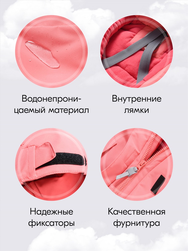Материал комбинезона обладает высокой водонепроницаемостью, что гарантирует защиту от мокрого снега и неожиданных осадков.