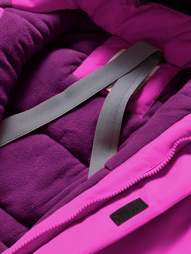 Воротник-стойка утепленный заботится о шее, защищая ее от холодного ветра, а внутренние лямки надежно фиксируют комбинезон, чтобы он не сползал даже во время самых активных спусков.