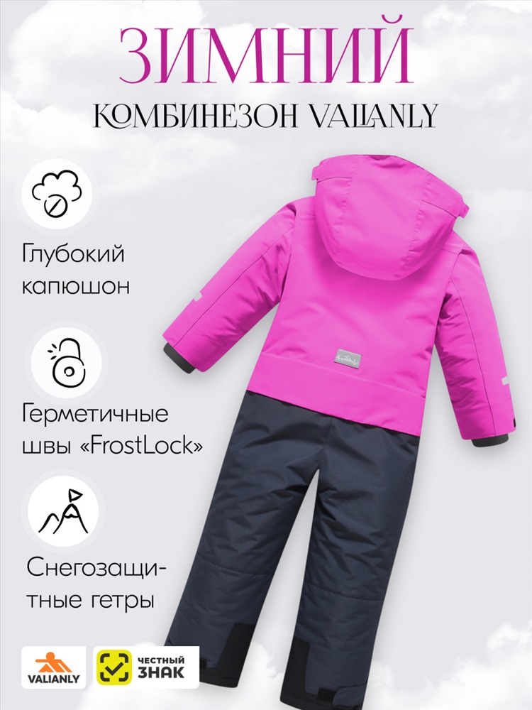 Производитель: VALIANLY; Артикул: 9410TF; Бренд: VALIANLY; Пол: Девочка; Сезон: Зима; Страна производителя: Китай; Тип: Комбинезон; Цвет: Темно-фиолетовый; Рост: от 128 до 158; Диапазон температур: °С от + 5° до -25°; Водонепроницаемость: 10 000 мм; Комплектация: Комбинезон/Капюшон; Состав: 100% Полиэстер; Материал: Мембранные материалы,Полиэстер,Плащевка,Тефлон; Материал подкладки комбинезона: Полиэстер/с начесом; Материал подкладки капюшона: Полиэстер/с начесом; Материал подкладки воротника: Полиэстер/с начесом; Материал наполнителя: Тинсулейт; Фактура материала: плотная; Утеплитель, гр: от 260 до 480 гр; Плотность утеплителя (г/кв.м): 240; Покрой: свободный; Длина подола: Средняя длина; Тип рукава: Длинная на манжете; Внутренние карманы: Нет; Тип кармана: Прорезной на липучках; Форма воротника: Стойка; Фиксаторы: По середине; Опции капюшона: Съемный на кнопке; Декоративные элементы: Значки, Лейбл, Вырез для пальца, Капюшон; Внутренние швы: Проклеены; Вид застежки: Молния/Липучки/Клапан; Особенности модели: family look, ветрозащита, водоотталкивающий материал, гипоаллергенный материал, с начесом, светоотражающие детали; Вид одежды: Горнолыжная/Свободная/Утепленная модель; Стиль: Повседневный, Спортивный, Школьный; Рисунок: Надписи, Логотип, Однотонный, Светится в темноте; Коллекция: Осень-зима 2024; Тренд: бэби-долл; Тип упаковки: Пакет; Цвет комплекта: фиолетовый, зеленый; Габариты (ДхШхВ): 52 x 36 x 13 см; Вес: 1.7 кг