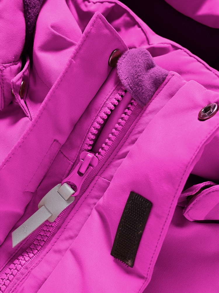 Ветрозащитная планка на липучках не даст холоду пробраться внутрь через молнию, а защита подбородка бережно охраняет кожу от раздражений.