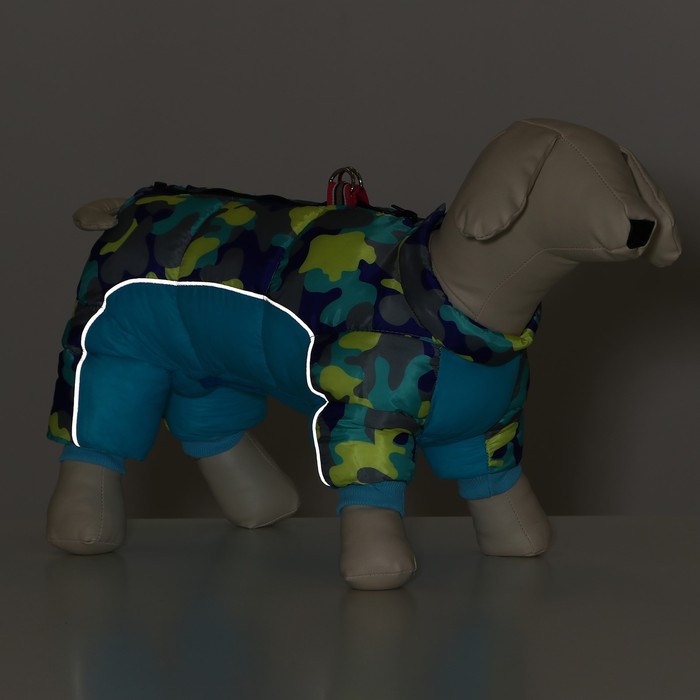 Зимний комбинезон для собак застегивается молнией на спине, благодаря этому животик питомца максимально защищен от ветра.