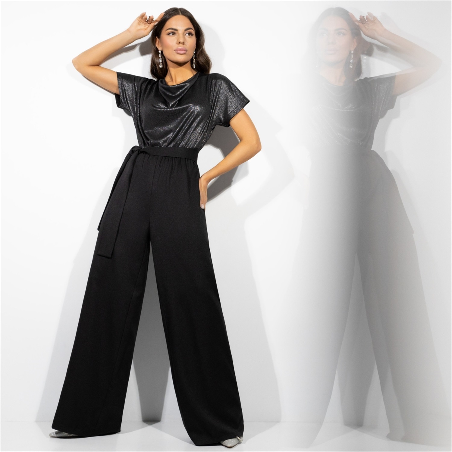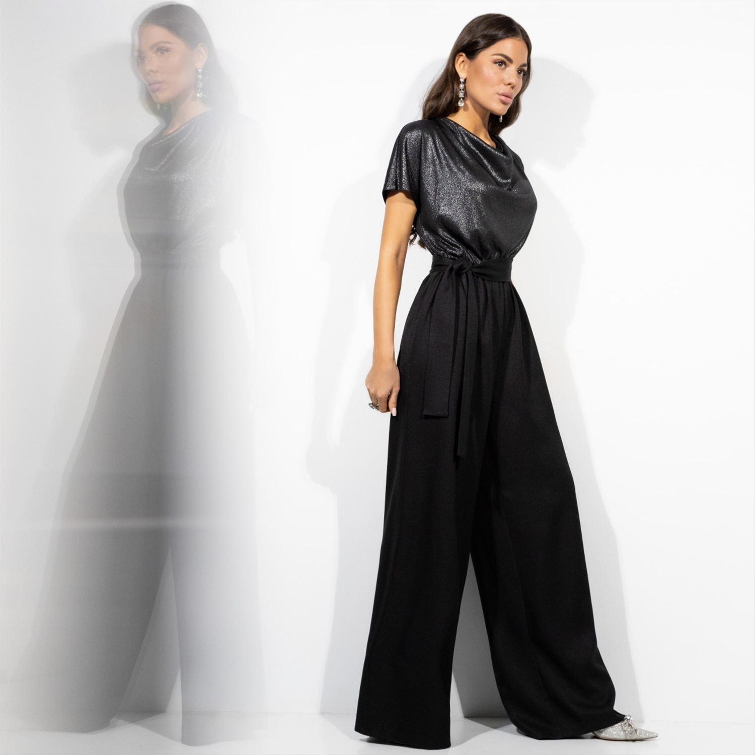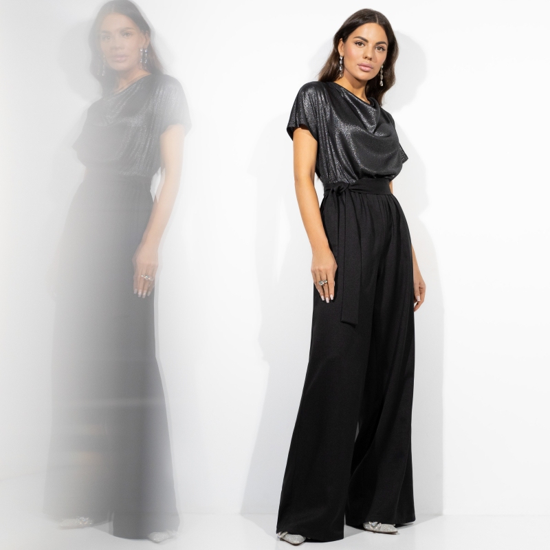 Если он спросит, нужно ли тебе платье к празднику, смело отвечай «нет!». А после его облегченного выдоха, добавляй, что нужен комбинезон. Пока он приходит в себя от изумления, добавляй комбинезон в корзинку. Комбинезон с широкими свободными штанинами. Линия талии на тонкой резинке. Есть пояс в комплекте. Комбинация двух видов ткани. Декоративные сборки в верхней части изделия. Глубокий вырез по спинке топа. Есть завязки. В мире моды комбинезоны стали символом стиля и комфорта, и наш комбинезон приталенного силуэта «Огонь внутри» — это истинное воплощение этих качеств. Он создан для тех, кто хочет выделяться на каждом мероприятии, будь то вечерний выход или праздничная вечеринка. Изготовленный из трикотажа с металлизированным напылением и креп-стрейч ткани «Булгари», этот комбинезон женский вечерний привлекает внимание своей изысканностью и блеском. Декоративные сборки в верхней части изделия и глубокий вырез на спинке добавляют образу нотку дерзости и уверенности. Покупая оптом, вы получаете возможность предложить своим клиентам настоящую модную находку, которая не оставит равнодушной ни одну женщину. Оптовая покупка комбинезонов «Огонь внутри» — это инвестиция в качество и стиль, которые ваши клиентки будут ценить. Широкие свободные штанины обеспечивают комфорт и свободу движений, делая этот комбинезон женский спортивный подходящим для различных случаев. Линия талии на тонкой резинке и пояс в комплекте позволяют настроить посадку изделия под индивидуальные предпочтения, подчеркивая достоинства фигуры. Разнообразие тканей в одном изделии придает ему уникальность и делает его идеальным выбором для тех, кто ценит оригинальность и хочет выразить свою индивидуальность. Приобретение комбинезонов оптом — это не только выгодно, но и перспективно. Каждая деталь этого комбинезона продумана до мелочей: завязки на спине добавляют элемент интриги, а возможность комбинировать его с различными аксессуарами делает его универсальным элементом гардероба. Этот комбинезон женский — воплощение современной моды и роскоши, который станет изюминкой любого ассортимента. Позвольте вашим клиенткам почувствовать себя особенными, предложив им это стильное и элегантное решение. Комментарии к товару