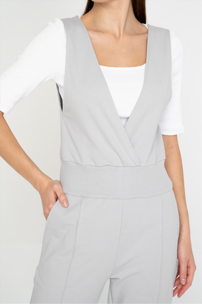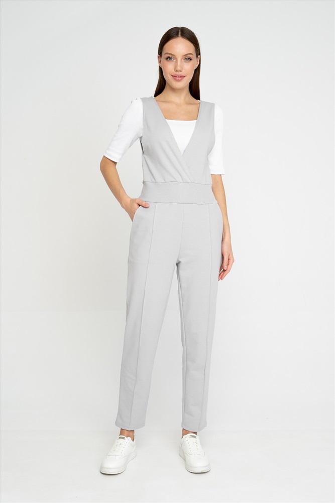 Комбинезон, ставший фаворитом у смелых и независимых! Он идеально подчеркнет достоинства вашей фигуры. Одни девушки оденут его на свидания, а другие просто будут носить его каждый день, чтобы напомнить о своей неподражаемости. Изюминкой комбинезона это его акцент на талии в виде контрастного подреза, что визуально сделает вас ещё стройнее. Глубокий V-образный вырез горловины, карманы, отсрочка на передней половинке брюк – все эти детали делают этот комбинезон модным и стильным. Быть модной с заботой о себе можно!