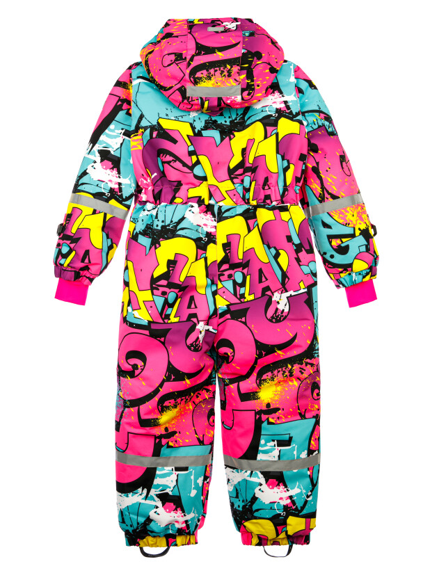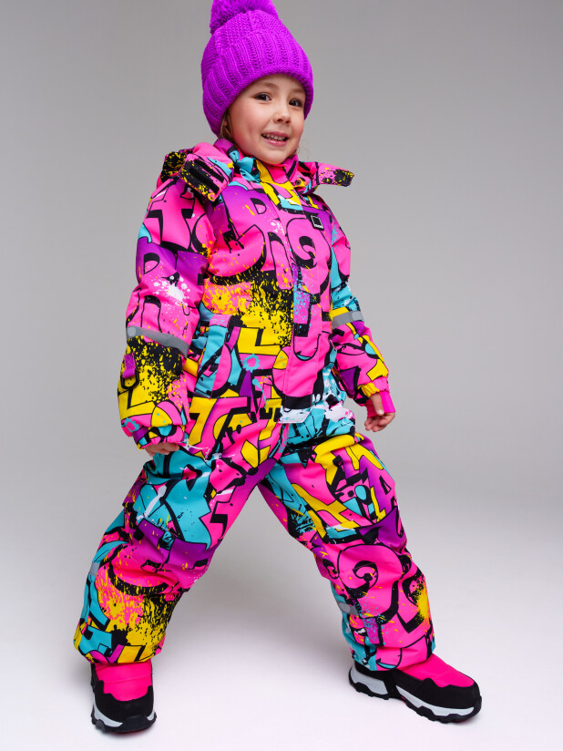 Мембранный материал делает этот яркий и модный комбинезон непромокаемым: мембрана не пропускает влагу снаружи, но выводит её изнутри, что крайне важно во время подвижных игр и занятий спортом.