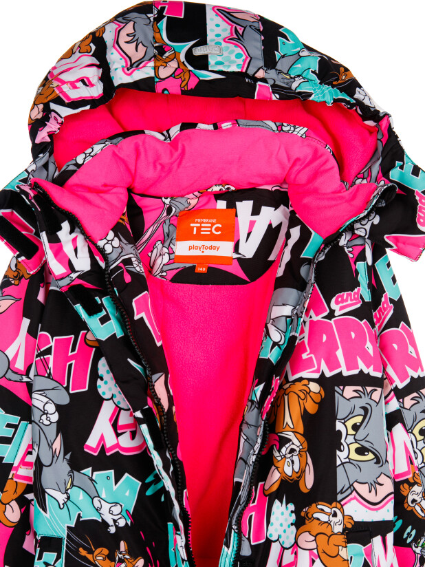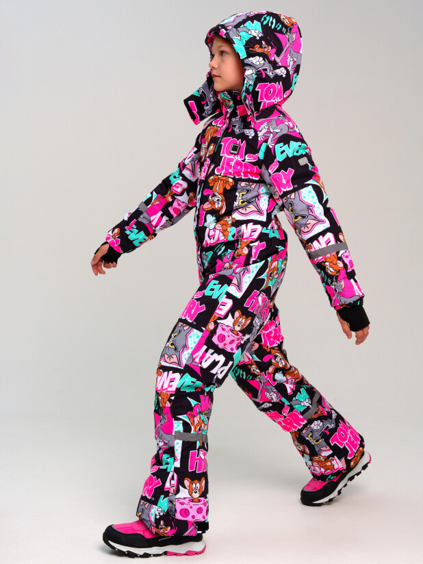 Мембранный материал делает этот яркий и модный комбинезон непромокаемым: мембрана не пропускает влагу снаружи, но выводит её изнутри, что крайне важно во время подвижных игр и занятий спортом.