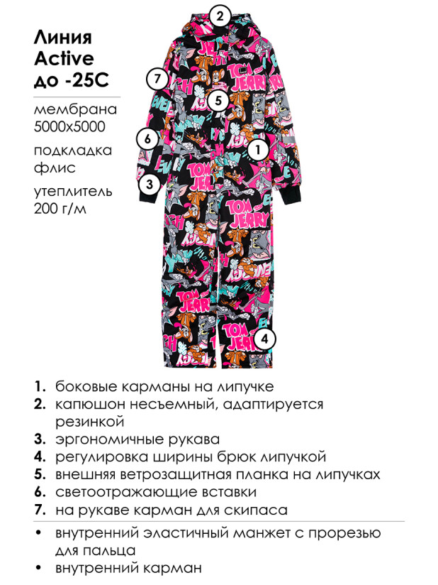 внешняя ветрозащитная планка на липучках; светоотражающие вставки; Утепленный горнолыжный комбинезон - идеальный выбор для активного отдыха на свежем воздухе в зимний период. Инновационный утеплитель и флисовая подкладка сохраняют тепло морозную погоду.