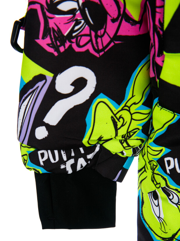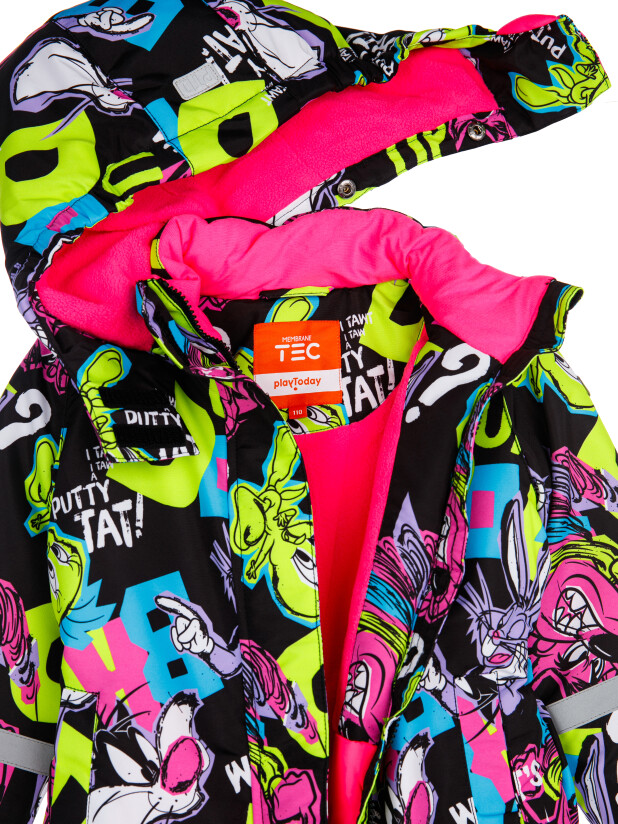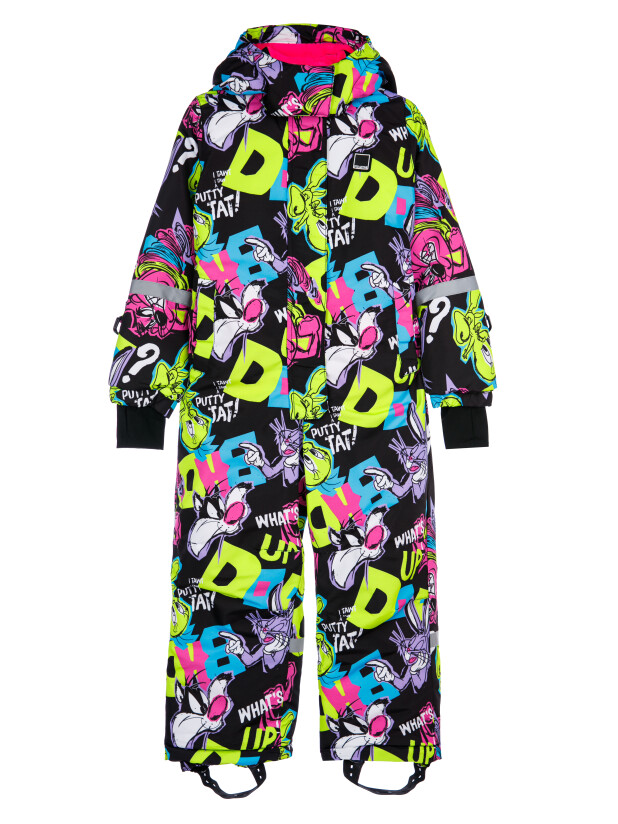 Мембранный материал делает этот яркий и модный комбинезон непромокаемым: мембрана не пропускает влагу снаружи, но выводит её изнутри, что крайне важно во время подвижных игр и занятий спортом.