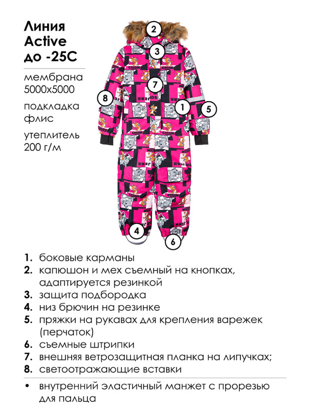 Зимний детский комбинезон для девочки. Особенности модели: Линия Active; Температурный режим до -25С; мембрана 5000х5000, подкладка - флис;
