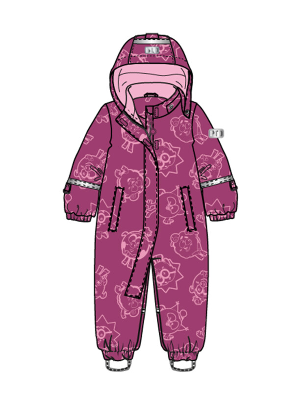 Мембранный материал делает этот яркий и модный комбинезон непромокаемым: мембрана не пропускает влагу снаружи, но выводит её изнутри, что крайне важно во время подвижных игр и занятий спортом.