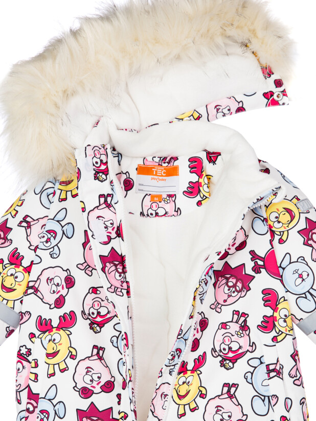 Мембранный материал делает этот яркий и модный комбинезон непромокаемым: мембрана не пропускает влагу снаружи, но выводит её изнутри, что крайне важно во время подвижных игр и занятий спортом.
