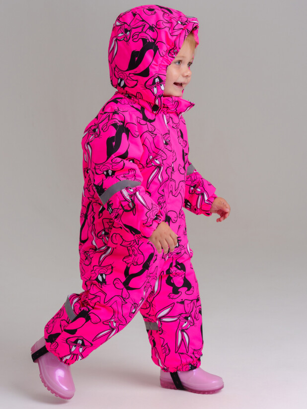 Мембранный материал делает этот яркий и модный комбинезон непромокаемым: мембрана не пропускает влагу снаружи, но выводит её изнутри, что крайне важно во время подвижных игр и занятий спортом.