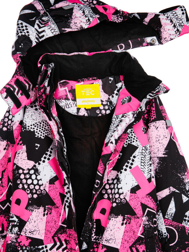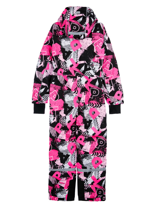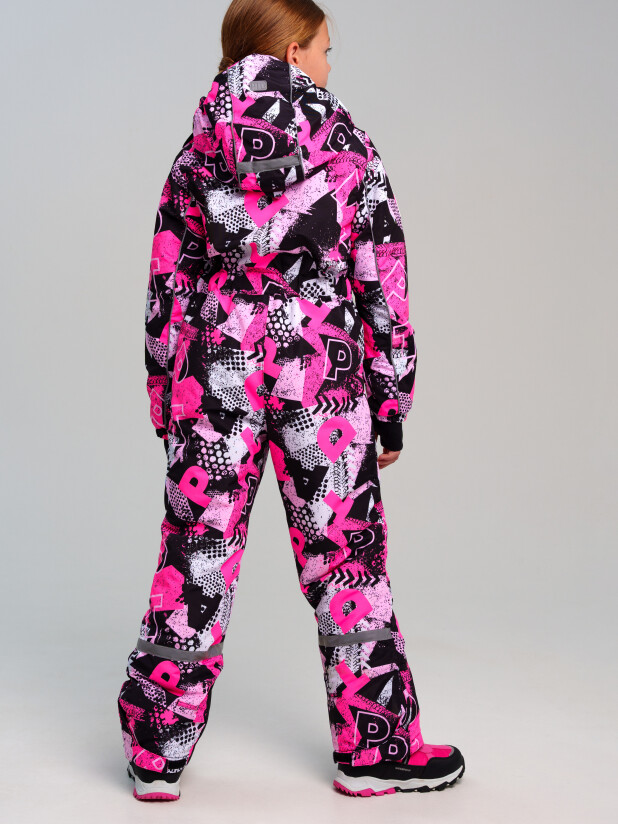Мембранный материал делает этот яркий и модный комбинезон непромокаемым: мембрана не пропускает влагу снаружи, но выводит её изнутри, что крайне важно во время подвижных игр и занятий спортом.