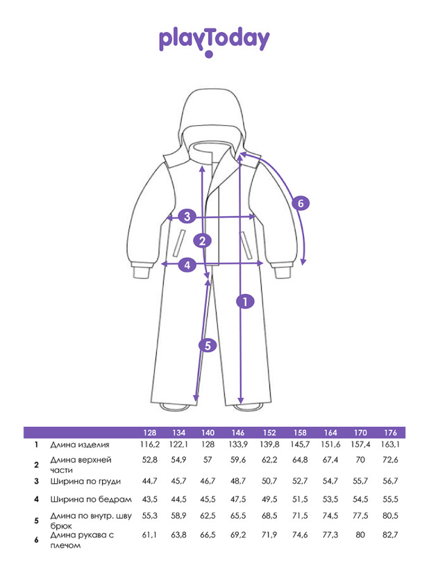 *Пожалуйста, обратите внимание, что указанный температурный режим является приблизительным и зависит от многих факторов, таких как возраст, физическое состояние, уровень активности ребенка и количество слоев одежды. Время, проведенное на открытом воздухе, и погодные условия, такие как холодный ветер, могут повлиять на тепловые характеристики изделия. Убедитесь, что защищены от холода голова, руки и ноги.