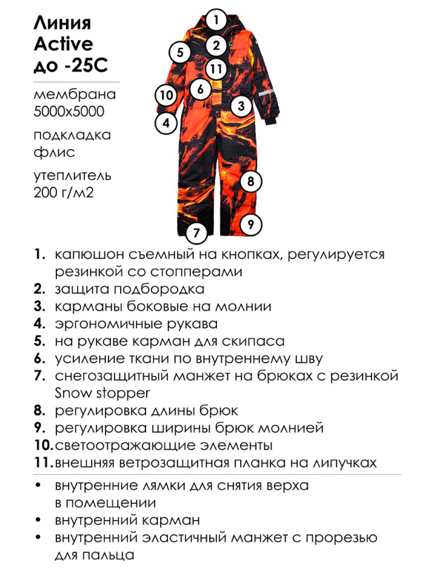 Легкий, теплый и удобный, комбинезон идеально подходит для спорта, лыж, сноуборда и игр на свежем воздухе в холодный период года: зима, поздняя осень и ранняя весна.