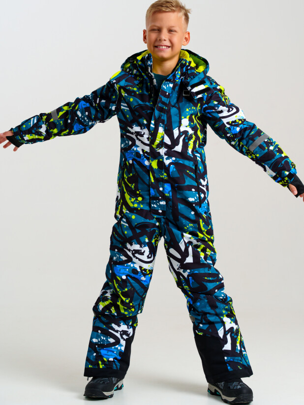 внешняя ветрозащитная планка на липучках; светоотражающие вставки; Утепленный горнолыжный комбинезон - идеальный выбор для активного отдыха на свежем воздухе в зимний период. Инновационный утеплитель и подкладка сохраняют тепло морозную погоду.