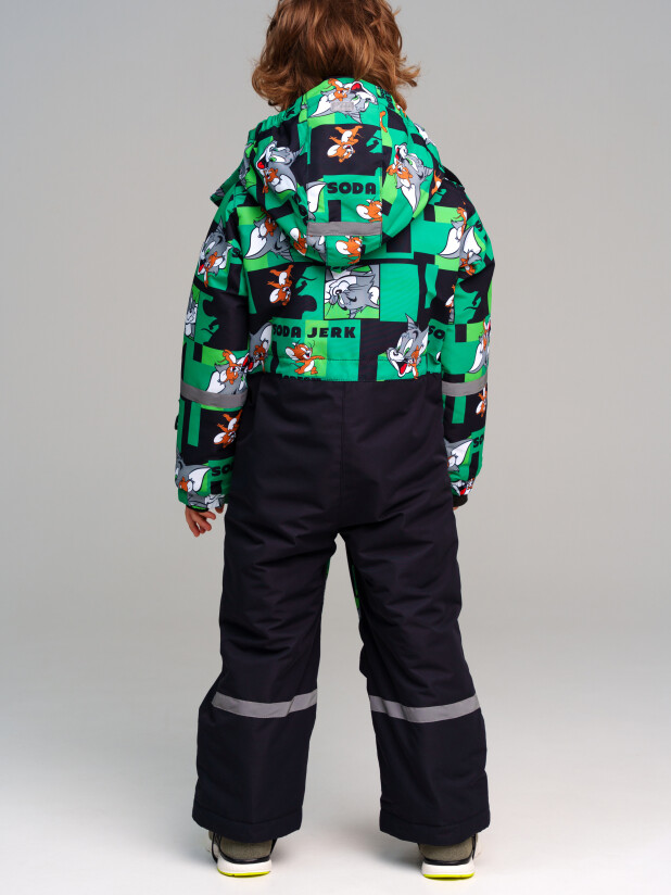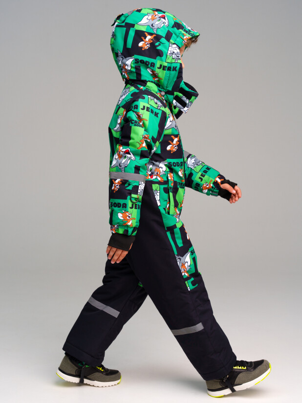 Мембранный материал делает этот яркий и модный комбинезон непромокаемым: мембрана не пропускает влагу снаружи, но выводит её изнутри, что крайне важно во время подвижных игр и занятий спортом.