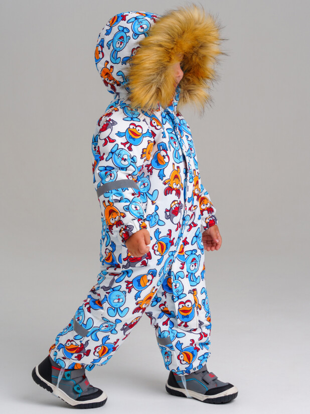 Мембранный материал делает этот яркий и модный комбинезон непромокаемым: мембрана не пропускает влагу снаружи, но выводит её изнутри, что крайне важно во время подвижных игр и занятий спортом.
