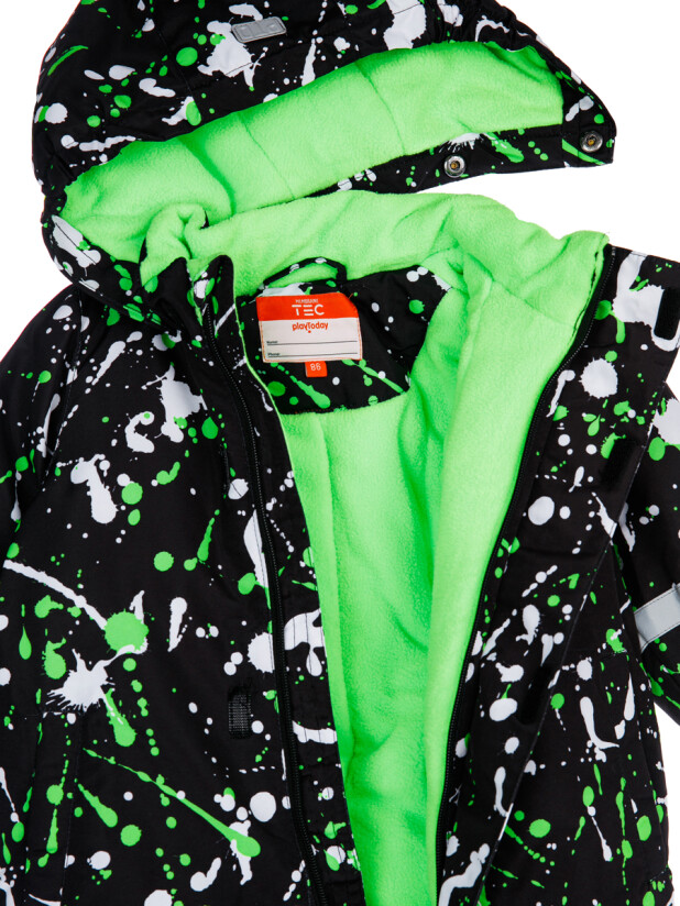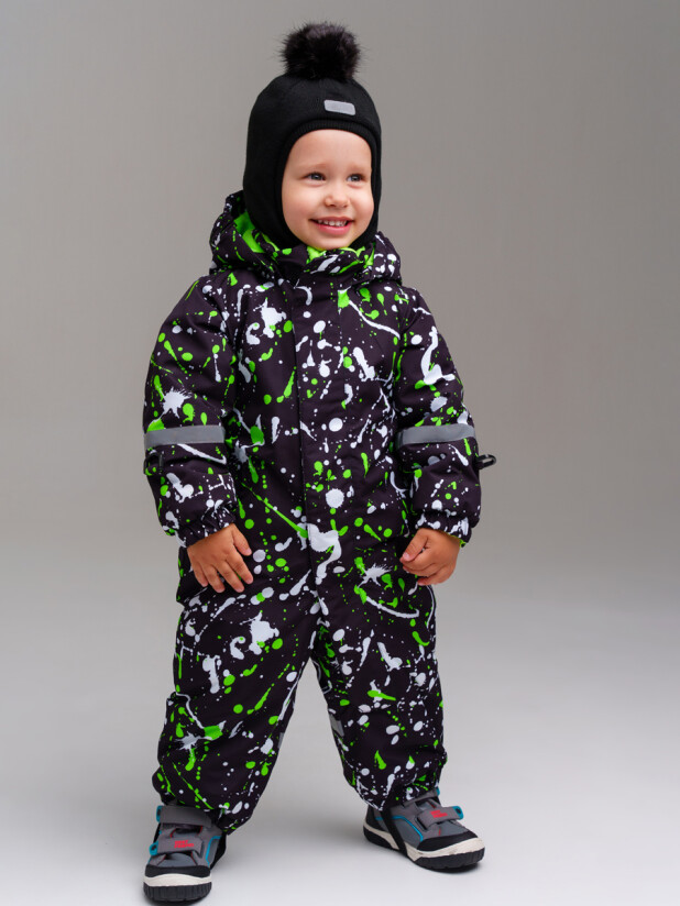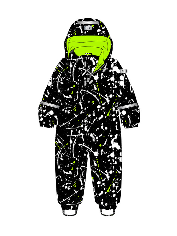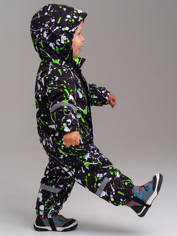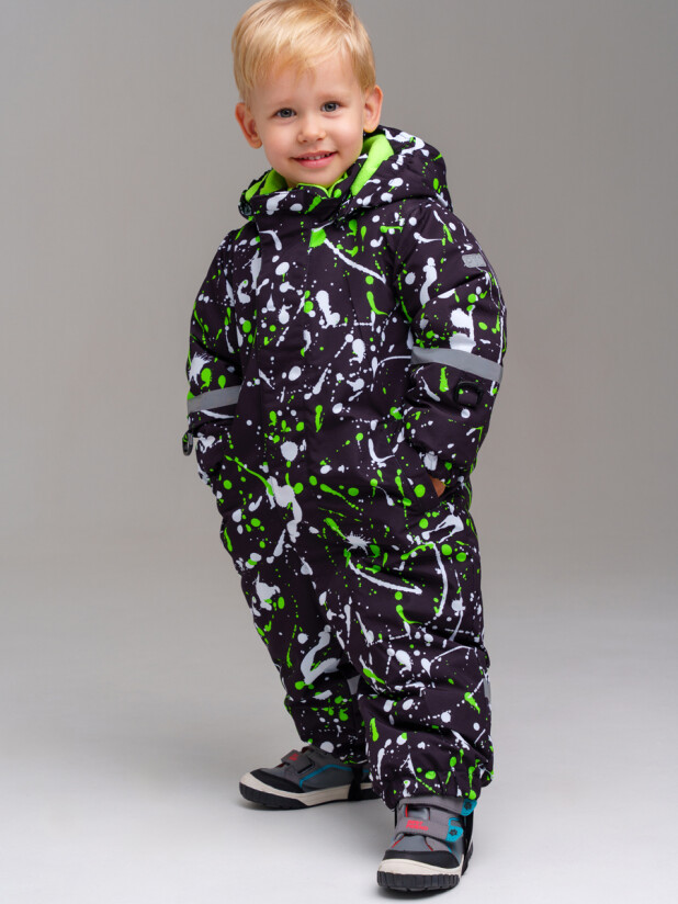 Мембранный материал делает этот яркий и модный комбинезон непромокаемым: мембрана не пропускает влагу снаружи, но выводит её изнутри, что крайне важно во время подвижных игр и занятий спортом.
