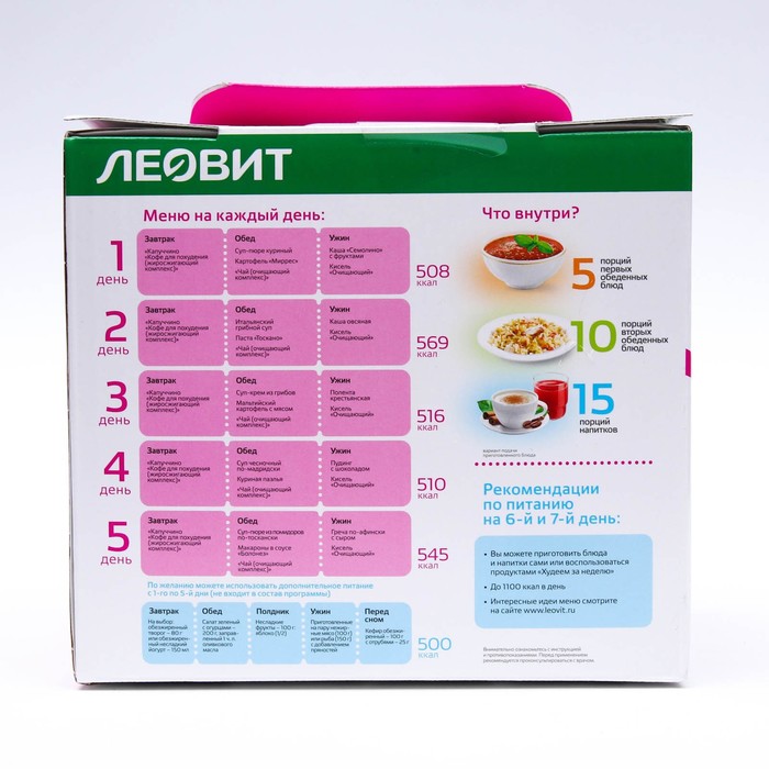 * разнообразный и полезный рацион на 5 дней;