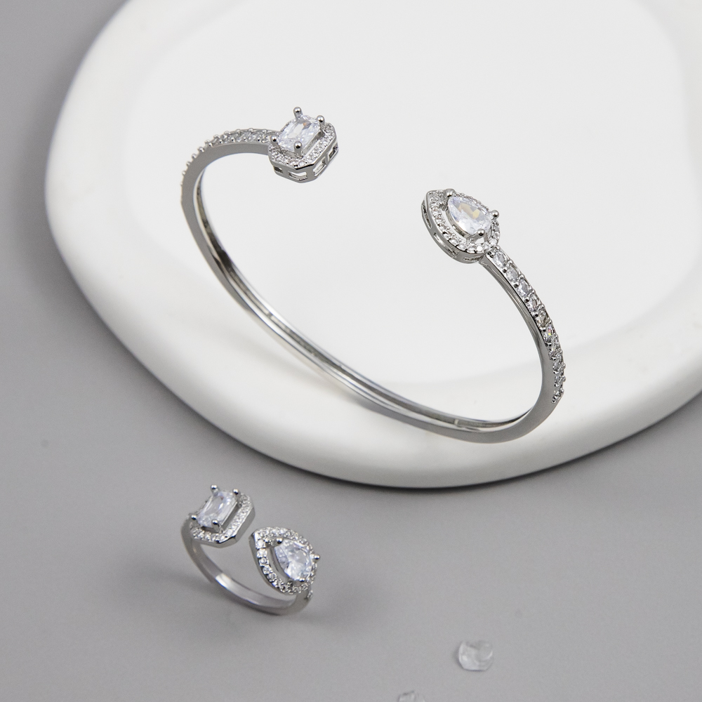 Тип изделия: Комплект; Проба: Биж.сплав гальван.покр.; Цвет металла: Белый; Вставка: Кубический цирконий; Размер: безразмерный