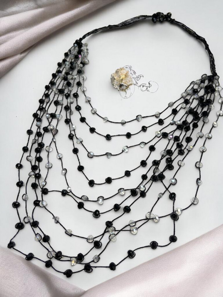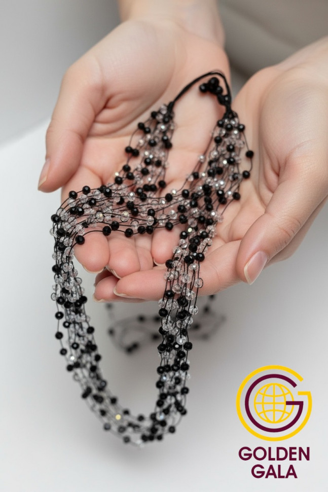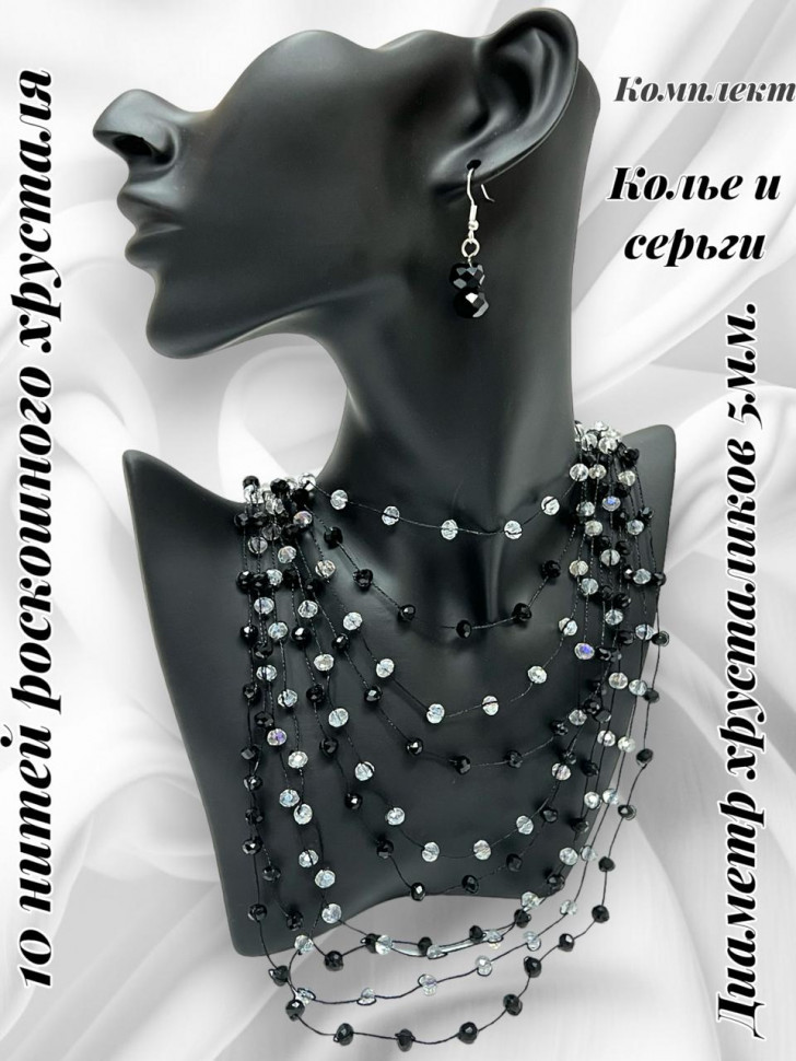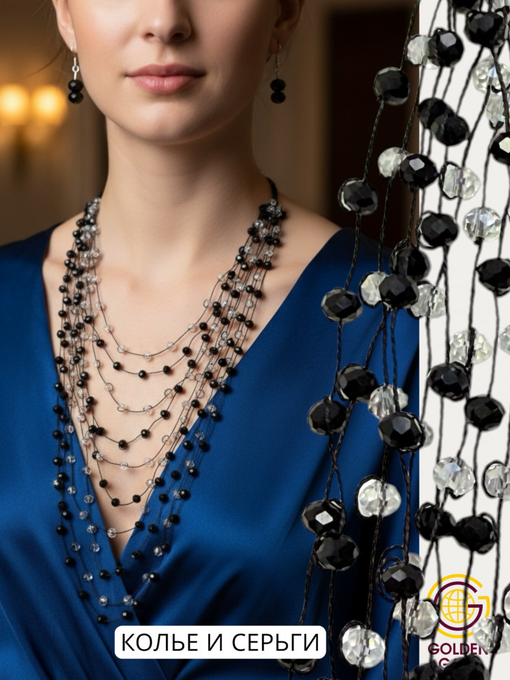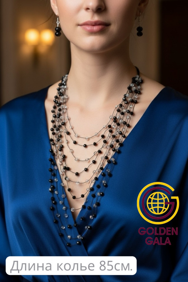 Комплект бижутерии из коллекции «Хрустальная россыпь» от Goldengala Погрузитесь в мир сияния и изысканности с роскошным комплектом бижутерии из коллекции «Хрустальная россыпь». Каждое украшение создано вручную с любовью к деталям, чтобы подчеркнуть вашу индивидуальность и добавить блеска в любой образ. Длинные бусы-Колье «Хрустальная россыпь»* Элегантное украшение колье состоит из 10 шелковых нитей, переплетенных с хрусталиками диаметром 5 мм. Каждый кристалл переливается в лучах света, создавая завораживающую игру бликов. Шелковая основа придает украшению легкость и нежность, а декоративная застежка с тремя хрусталиками не только украшает, но и позволяет регулировать длину. Длина колье: 85 см – идеально для многослойных образов или как самостоятельное украшение. Серьги «Хрустальная россыпь» Комплект дополняют изящные не тяжелые серьги с хрусталиками диаметром 10 мм, которые мягко покачиваются, улавливая свет. Оптимальная длина сережек с камушками 4 см делает их универсальными – они подойдут как для повседневного образа, так и для торжественных мероприятий. Душки изготовлены из гипоаллергенного бижутерного сплава, обеспечивая комфорт даже при длительном ношении. Для кого этот комплект? «Хрустальная россыпь» – это универсальное украшение, которое подчеркнет вашу женственность и утонченность. Оно идеально дополнит как повседневный лук, так и вечерний образ, добавив ему блеска и изысканности. Подарите себе или близким частичку роскоши с Goldengala – брендом, который делает каждую деталь особенной!