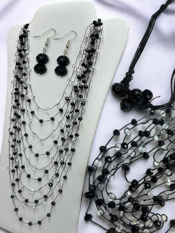 Комплект бижутерии "Хрустальная россыпь" , цвет черный с прозрачным