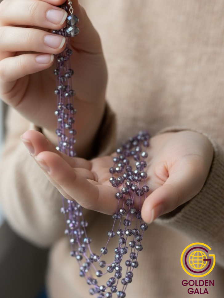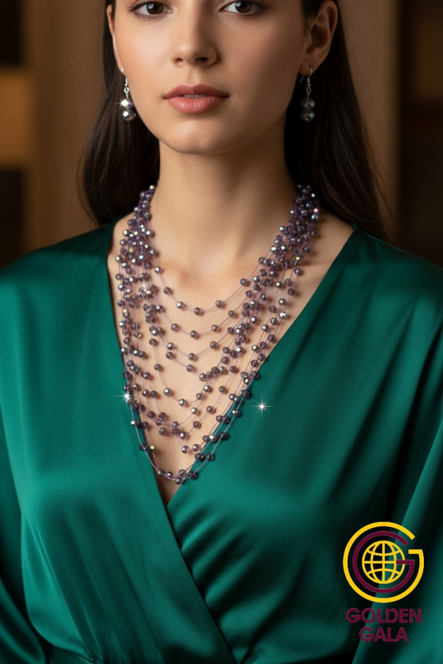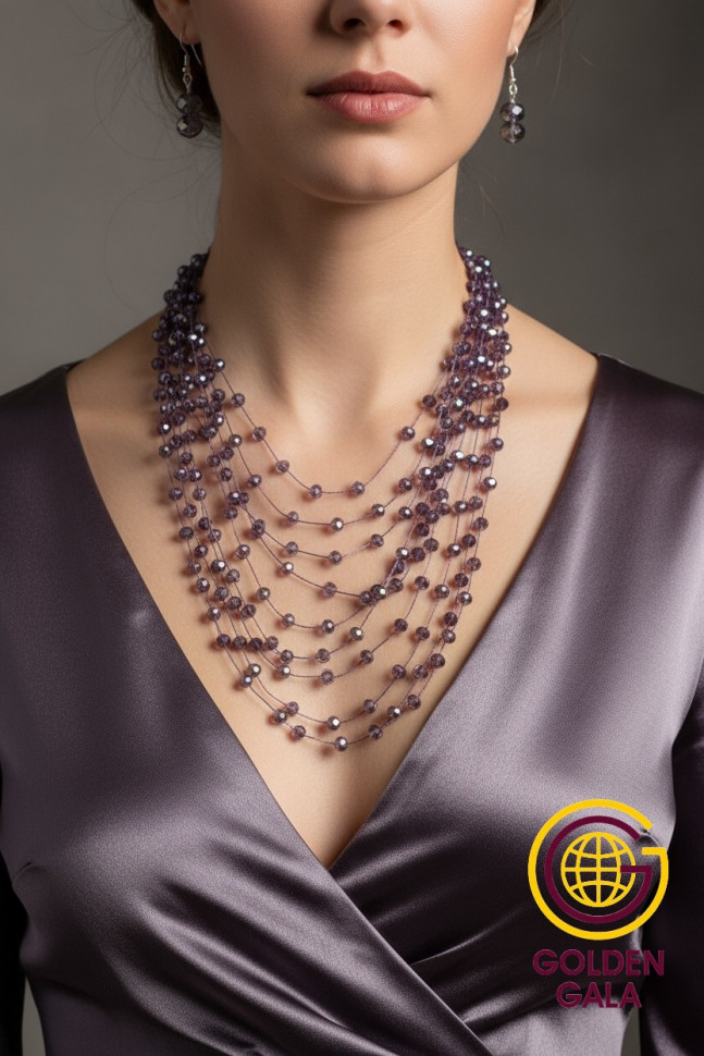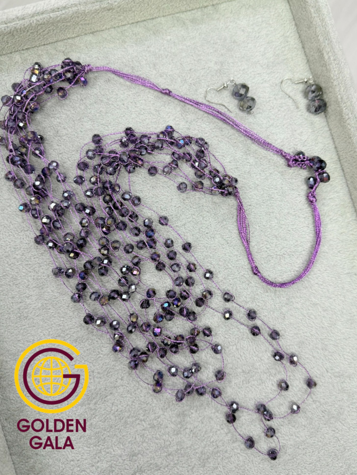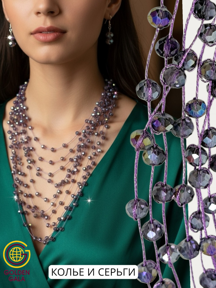Комплект бижутерии из коллекции «Хрустальная россыпь» от Goldengala Погрузитесь в мир сияния и изысканности с роскошным комплектом бижутерии из коллекции «Хрустальная россыпь». Каждое украшение создано вручную с любовью к деталям, чтобы подчеркнуть вашу индивидуальность и добавить блеска в любой образ. Длинные бусы-Колье «Хрустальная россыпь»* Элегантное украшение колье состоит из 10 шелковых нитей, переплетенных с хрусталиками диаметром 5 мм. Каждый кристалл переливается в лучах света, создавая завораживающую игру бликов. Шелковая основа придает украшению легкость и нежность, а декоративная застежка с тремя хрусталиками не только украшает, но и позволяет регулировать длину. Длина колье: 85 см – идеально для многослойных образов или как самостоятельное украшение. Серьги «Хрустальная россыпь» Комплект дополняют изящные не тяжелые серьги с хрусталиками диаметром 10 мм, которые мягко покачиваются, улавливая свет. Оптимальная длина сережек с камушками 4 см делает их универсальными – они подойдут как для повседневного образа, так и для торжественных мероприятий. Душки изготовлены из гипоаллергенного бижутерного сплава, обеспечивая комфорт даже при длительном ношении. Для кого этот комплект? «Хрустальная россыпь» – это универсальное украшение, которое подчеркнет вашу женственность и утонченность. Оно идеально дополнит как повседневный лук, так и вечерний образ, добавив ему блеска и изысканности. Подарите себе или близким частичку роскоши с Goldengala – брендом, который делает каждую деталь особенной!