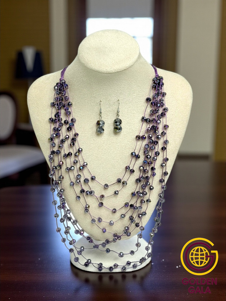 Комплект бижутерии "Хрустальная россыпь" , цвет фиолетовый перламутр