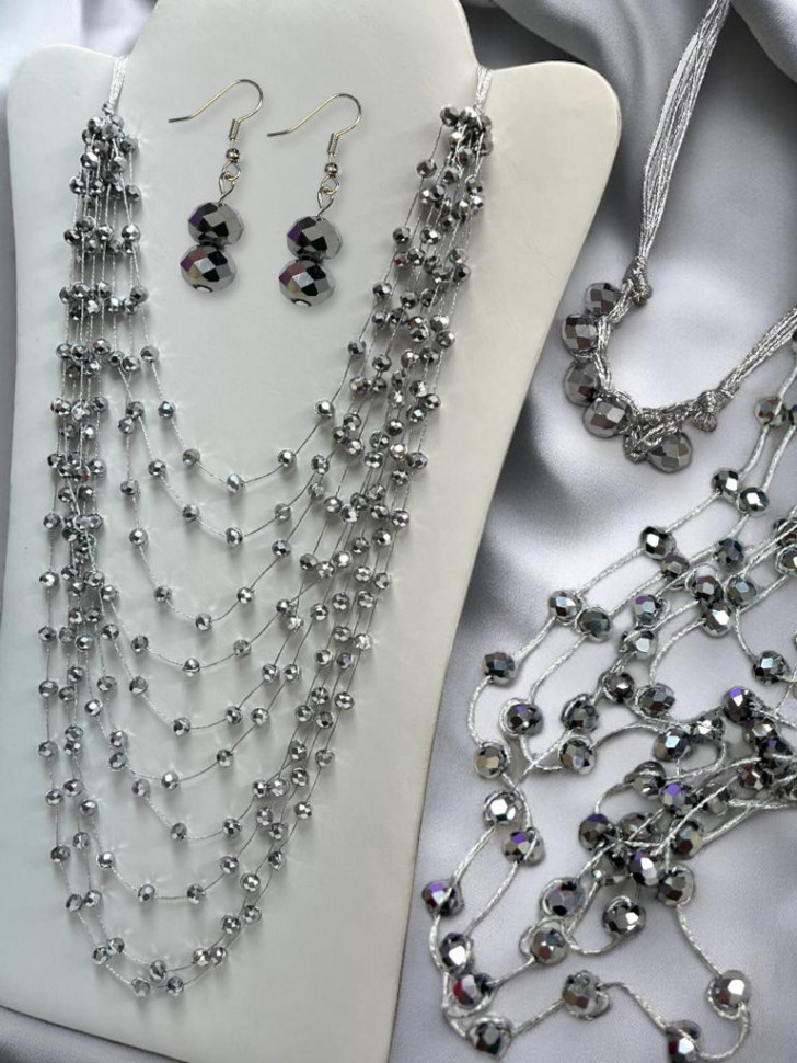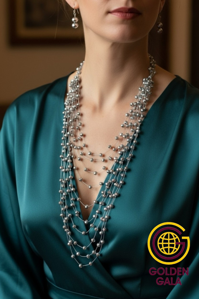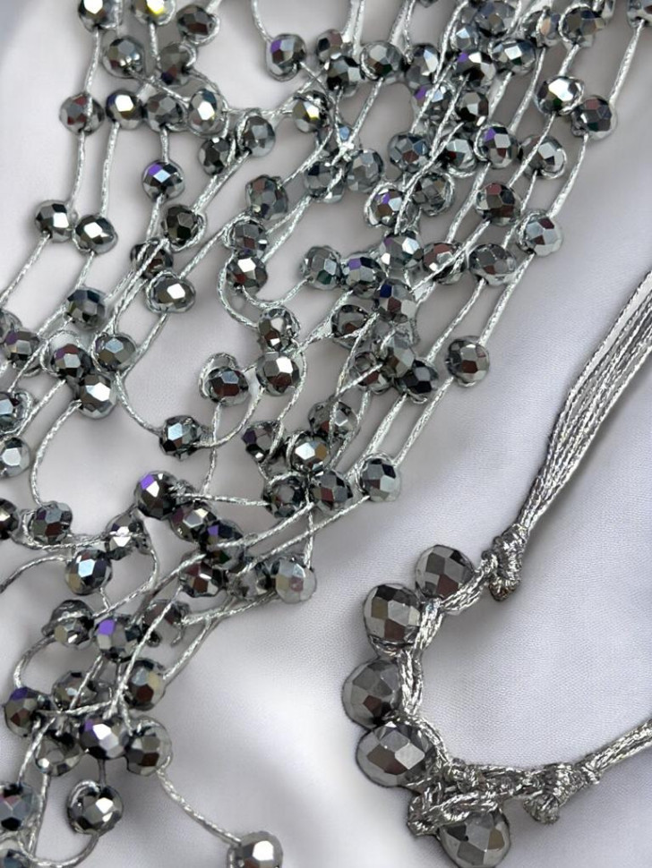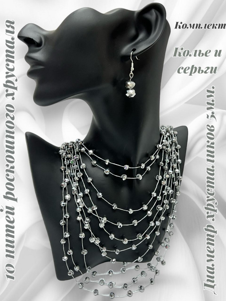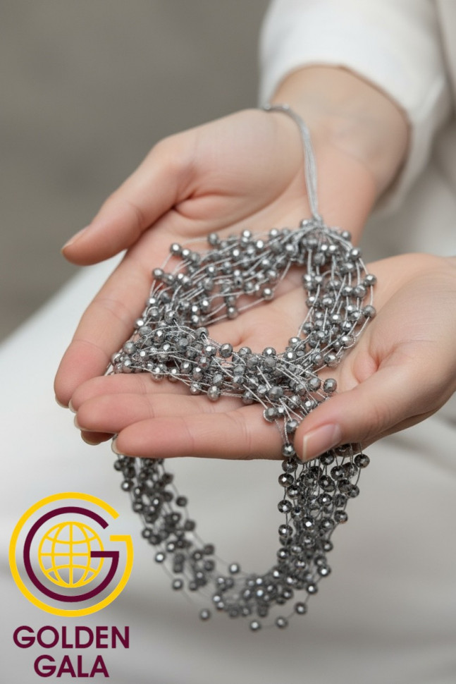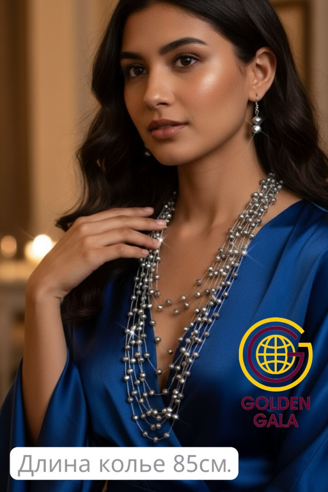 Комплект бижутерии из коллекции «Хрустальная россыпь» от Goldengala Погрузитесь в мир сияния и изысканности с роскошным комплектом бижутерии из коллекции «Хрустальная россыпь». Каждое украшение создано вручную с любовью к деталям, чтобы подчеркнуть вашу индивидуальность и добавить блеска в любой образ. Длинные бусы-Колье «Хрустальная россыпь»* Элегантное украшение колье состоит из 10 шелковых нитей, переплетенных с хрусталиками диаметром 5 мм. Каждый кристалл переливается в лучах света, создавая завораживающую игру бликов. Шелковая основа придает украшению легкость и нежность, а декоративная застежка с тремя хрусталиками не только украшает, но и позволяет регулировать длину. Длина колье: 85 см – идеально для многослойных образов или как самостоятельное украшение. Серьги «Хрустальная россыпь» Комплект дополняют изящные не тяжелые серьги с хрусталиками диаметром 10 мм, которые мягко покачиваются, улавливая свет. Оптимальная длина сережек с камушками 4 см делает их универсальными – они подойдут как для повседневного образа, так и для торжественных мероприятий. Душки изготовлены из гипоаллергенного бижутерного сплава, обеспечивая комфорт даже при длительном ношении. Для кого этот комплект? «Хрустальная россыпь» – это универсальное украшение, которое подчеркнет вашу женственность и утонченность. Оно идеально дополнит как повседневный лук, так и вечерний образ, добавив ему блеска и изысканности. Подарите себе или близким частичку роскоши с Goldengala – брендом, который делает каждую деталь особенной!