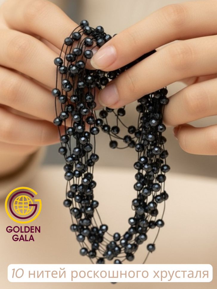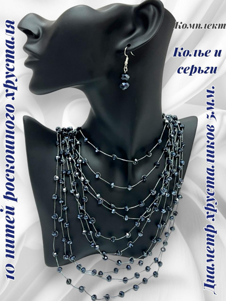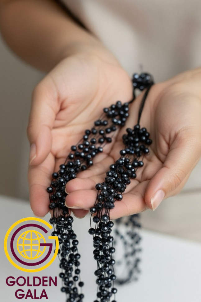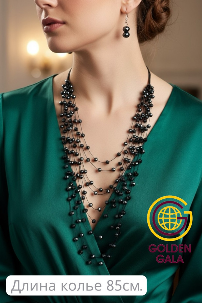 Комплект бижутерии из коллекции «Хрустальная россыпь» от Goldengala Погрузитесь в мир сияния и изысканности с роскошным комплектом бижутерии из коллекции «Хрустальная россыпь». Каждое украшение создано вручную с любовью к деталям, чтобы подчеркнуть вашу индивидуальность и добавить блеска в любой образ. Длинные бусы-Колье «Хрустальная россыпь»* Элегантное украшение колье состоит из 10 шелковых нитей, переплетенных с хрусталиками диаметром 5 мм. Каждый кристалл переливается в лучах света, создавая завораживающую игру бликов. Шелковая основа придает украшению легкость и нежность, а декоративная застежка с тремя хрусталиками не только украшает, но и позволяет регулировать длину. Длина колье: 85 см – идеально для многослойных образов или как самостоятельное украшение. Серьги «Хрустальная россыпь» Комплект дополняют изящные не тяжелые серьги с хрусталиками диаметром 10 мм, которые мягко покачиваются, улавливая свет. Оптимальная длина сережек с камушками 4 см делает их универсальными – они подойдут как для повседневного образа, так и для торжественных мероприятий. Душки изготовлены из гипоаллергенного бижутерного сплава, обеспечивая комфорт даже при длительном ношении. Для кого этот комплект? «Хрустальная россыпь» – это универсальное украшение, которое подчеркнет вашу женственность и утонченность. Оно идеально дополнит как повседневный лук, так и вечерний образ, добавив ему блеска и изысканности. Подарите себе или близким частичку роскоши с Goldengala – брендом, который делает каждую деталь особенной!