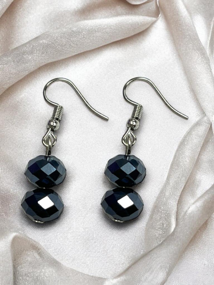 Комплект бижутерии "Хрустальная россыпь" , цвет синий гематитовый