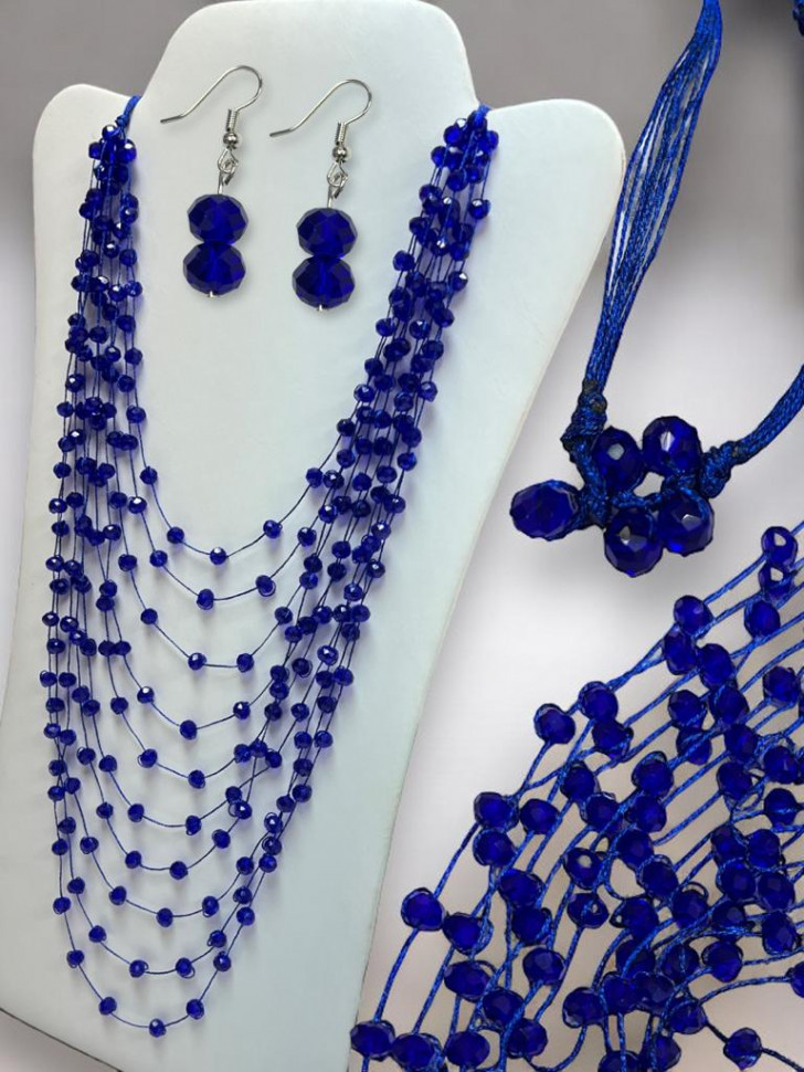 Комплект бижутерии "Хрустальная россыпь" , цвет яркий синий