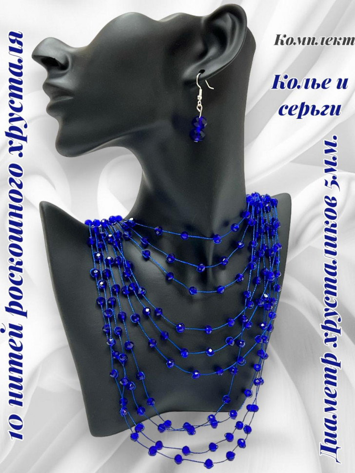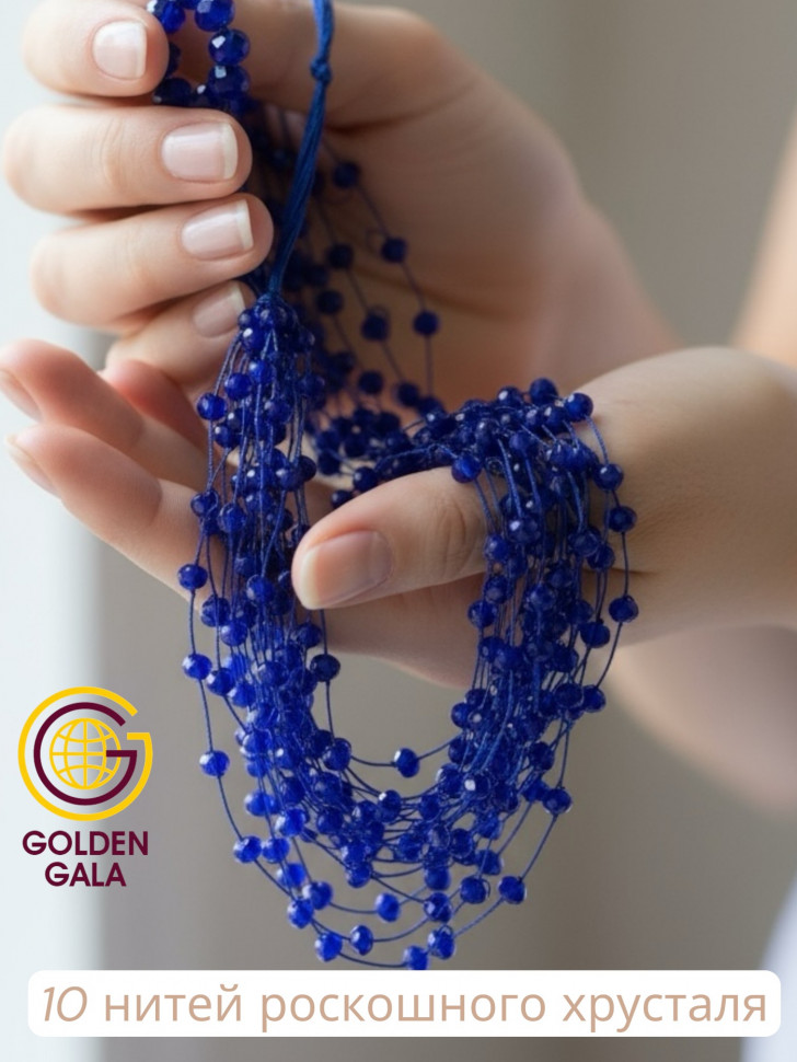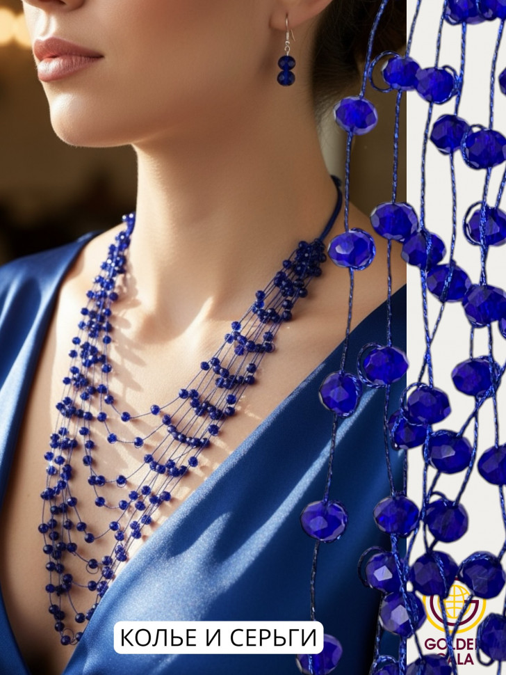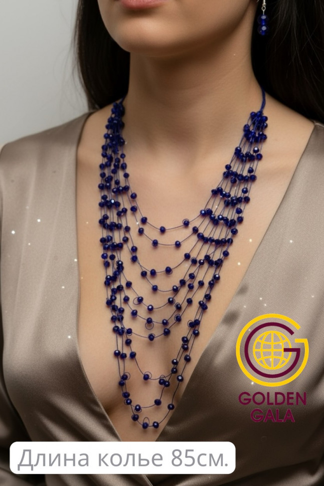 Комплект бижутерии из коллекции «Хрустальная россыпь» от Goldengala Погрузитесь в мир сияния и изысканности с роскошным комплектом бижутерии из коллекции «Хрустальная россыпь». Каждое украшение создано вручную с любовью к деталям, чтобы подчеркнуть вашу индивидуальность и добавить блеска в любой образ. Длинные бусы-Колье «Хрустальная россыпь»* Элегантное украшение колье состоит из 10 шелковых нитей, переплетенных с хрусталиками диаметром 5 мм. Каждый кристалл переливается в лучах света, создавая завораживающую игру бликов. Шелковая основа придает украшению легкость и нежность, а декоративная застежка с тремя хрусталиками не только украшает, но и позволяет регулировать длину. Длина колье: 85 см – идеально для многослойных образов или как самостоятельное украшение. Серьги «Хрустальная россыпь» Комплект дополняют изящные не тяжелые серьги с хрусталиками диаметром 10 мм, которые мягко покачиваются, улавливая свет. Оптимальная длина сережек с камушками 4 см делает их универсальными – они подойдут как для повседневного образа, так и для торжественных мероприятий. Душки изготовлены из гипоаллергенного бижутерного сплава, обеспечивая комфорт даже при длительном ношении. Для кого этот комплект? «Хрустальная россыпь» – это универсальное украшение, которое подчеркнет вашу женственность и утонченность. Оно идеально дополнит как повседневный лук, так и вечерний образ, добавив ему блеска и изысканности. Подарите себе или близким частичку роскоши с Goldengala – брендом, который делает каждую деталь особенной!