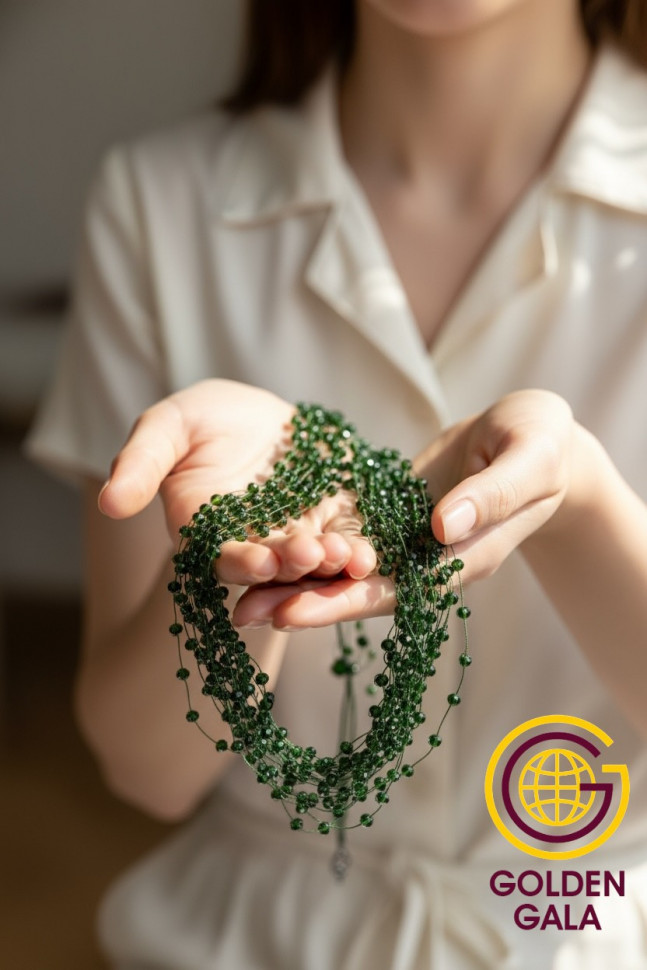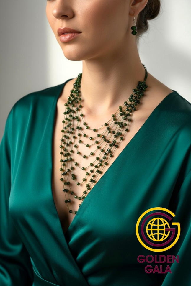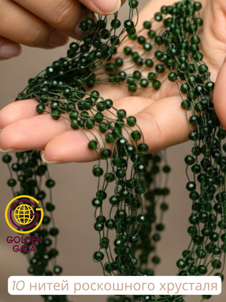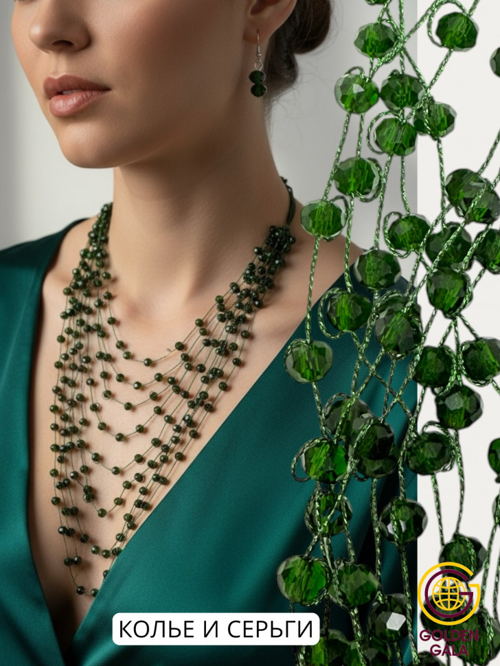Комплект бижутерии из коллекции «Хрустальная россыпь» от Goldengala Погрузитесь в мир сияния и изысканности с роскошным комплектом бижутерии из коллекции «Хрустальная россыпь». Каждое украшение создано вручную с любовью к деталям, чтобы подчеркнуть вашу индивидуальность и добавить блеска в любой образ. Длинные бусы-Колье «Хрустальная россыпь»* Элегантное украшение колье состоит из 10 шелковых нитей, переплетенных с хрусталиками диаметром 5 мм. Каждый кристалл переливается в лучах света, создавая завораживающую игру бликов. Шелковая основа придает украшению легкость и нежность, а декоративная застежка с тремя хрусталиками не только украшает, но и позволяет регулировать длину. Длина колье: 85 см – идеально для многослойных образов или как самостоятельное украшение. Серьги «Хрустальная россыпь» Комплект дополняют изящные не тяжелые серьги с хрусталиками диаметром 10 мм, которые мягко покачиваются, улавливая свет. Оптимальная длина сережек с камушками 4 см делает их универсальными – они подойдут как для повседневного образа, так и для торжественных мероприятий. Душки изготовлены из гипоаллергенного бижутерного сплава, обеспечивая комфорт даже при длительном ношении. Для кого этот комплект? «Хрустальная россыпь» – это универсальное украшение, которое подчеркнет вашу женственность и утонченность. Оно идеально дополнит как повседневный лук, так и вечерний образ, добавив ему блеска и изысканности. Подарите себе или близким частичку роскоши с Goldengala – брендом, который делает каждую деталь особенной!