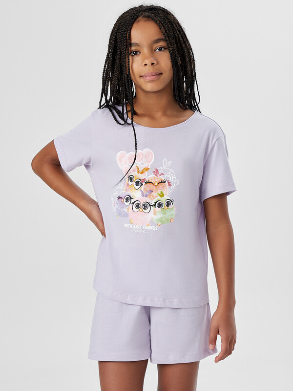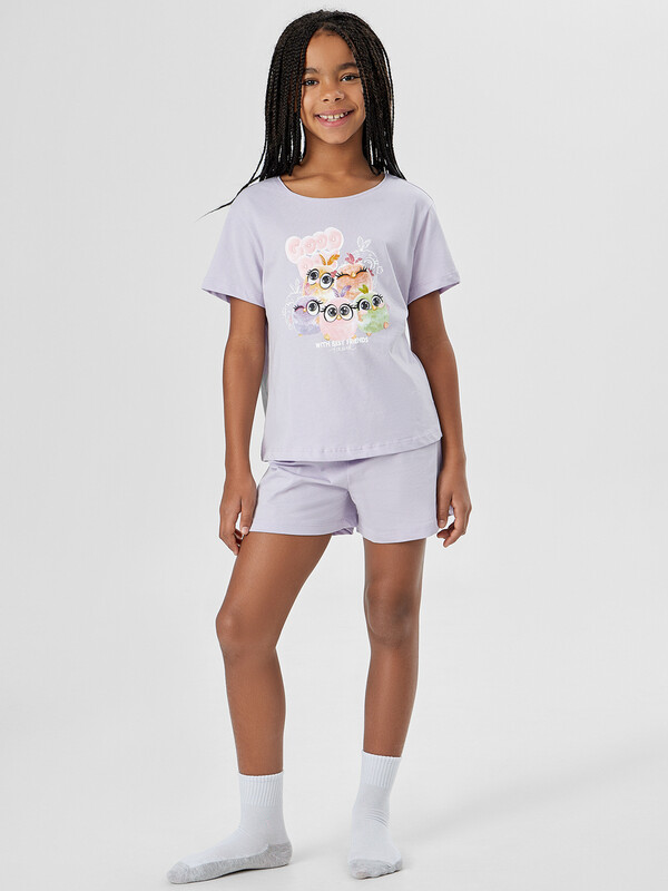 Комплект для девочки, состоит из футболки с короткими рукавами и шорт из натурального хлопка. Подходит для сна и отдыха. Материал очень приятный к телу, хорошо пропускает воздух, что позволяет чувствовать себя комфортно даже в жаркую погоду. Идеальный выбор детской одежды для дома. Стильно, красиво, комфортно. Футболка декорирована интересным принтом, шортики однотонные. Широкий размерный ряд, базовые и яркие расцветки, модели с принтами, рисунками и печатями. Купите детскую пижаму для девочки от Mark Formelle, порадуйте ребенка красивым и стильным подарком!
