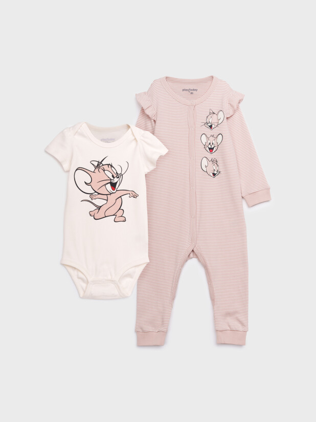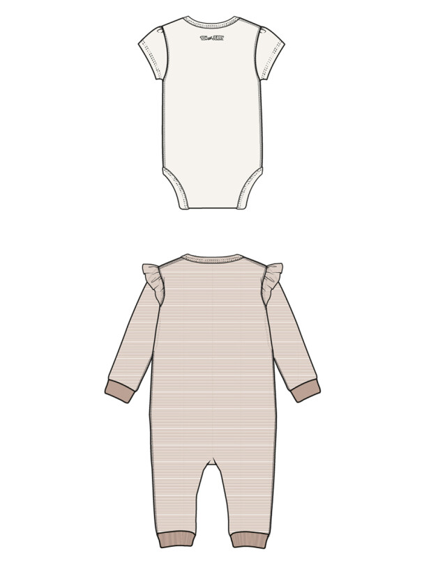 Набор для новорожденных: боди, комбинезон. Комплект: боди, комбинезон из натурального хлопкового двойного трикотажа. Комбинезон на кнопках. Кнопки внизу – 2 ряда, боди растет вместе с малышом.
